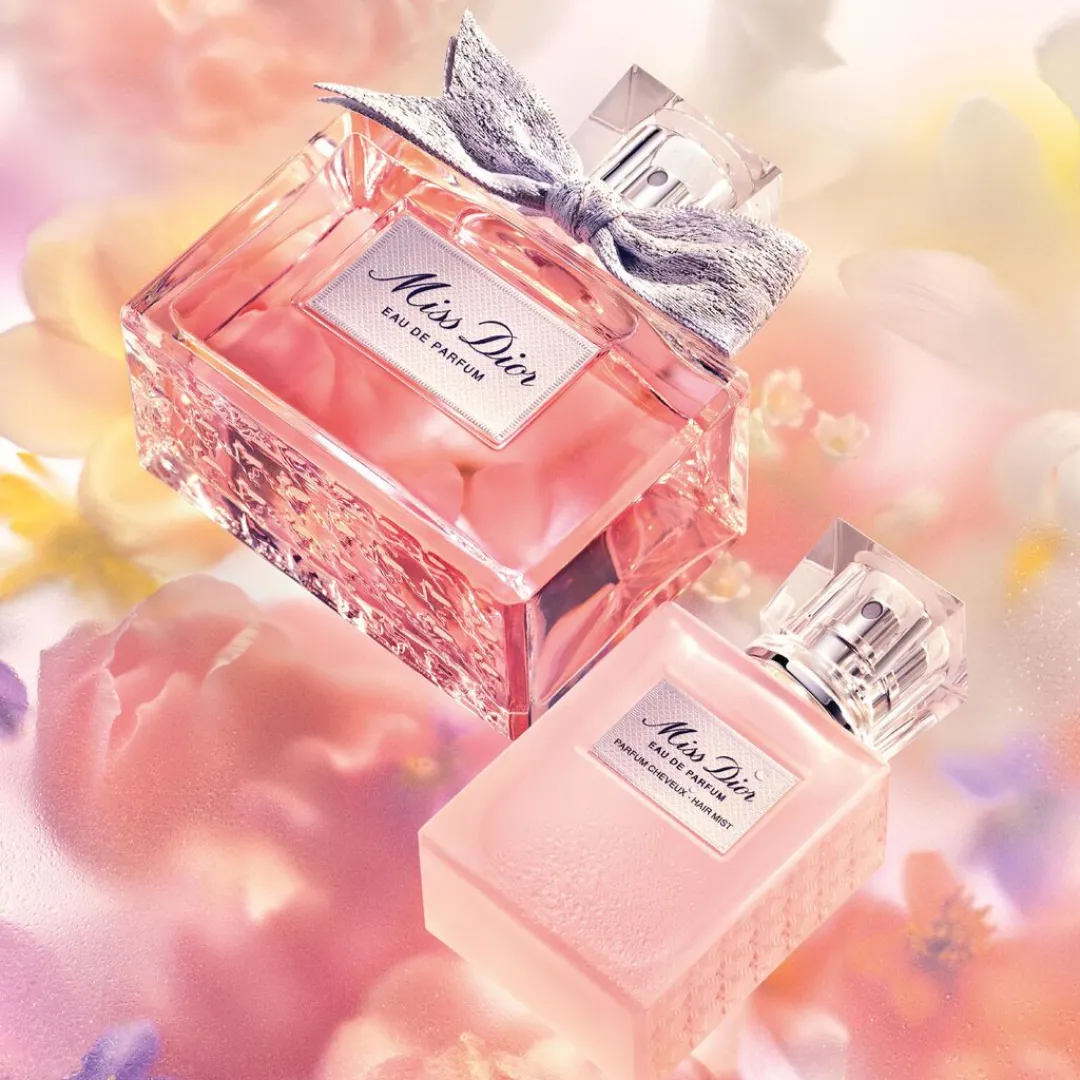 Цей безспиртовий спрей для волосся, просочений рожевою водою, є відлунням чуттєвого, оксамитового шлейфу парфумів Miss Dior Eau de Parfum і поширює свіжість букета весняних квітів. Ніжний діалог між квітковими нотами втілює справжній «міллефіорі», оповитий деревними акордами. Ефірний шлейф спрею для волосся продовжує ніжний аромат парфумів Miss Dior Eau de Parfum.