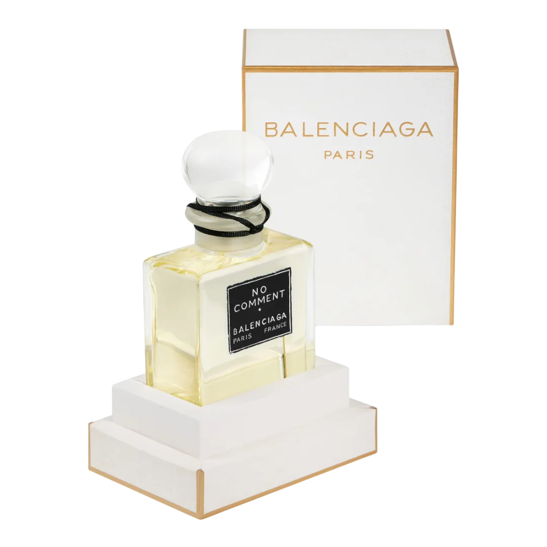 Аромат натхненний відомим своєю закритістю характером Крістобаля Баленсіаги та його переконанням, що твори повинні говорити самі за себе. No Comment, мабуть, найлегша суміш у колекції, є буквально ковтком свіжого повітря з його зеленими нотками, що нагадують хвоїнку, які викликають відчуття стриманості та беззаперечної впевненості.