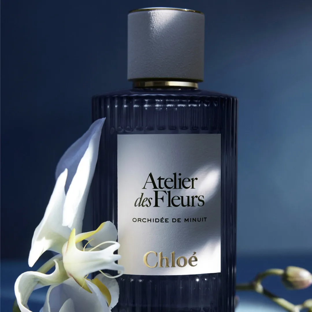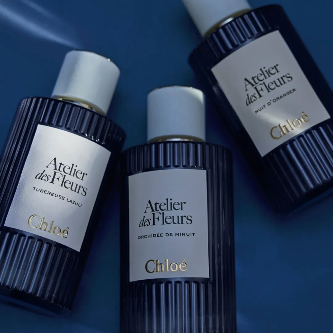 Для колекції Fleurs de Nuit культовий флакон Atelier des Fleurs набуває чарівного відтінку північного синього кольору, а його скляний силует прикрашений фірмовою плісировкою Maison у вигляді сонячних променів. Цей квітковий аромат від Chloé є концентратом позачасової елегантності.