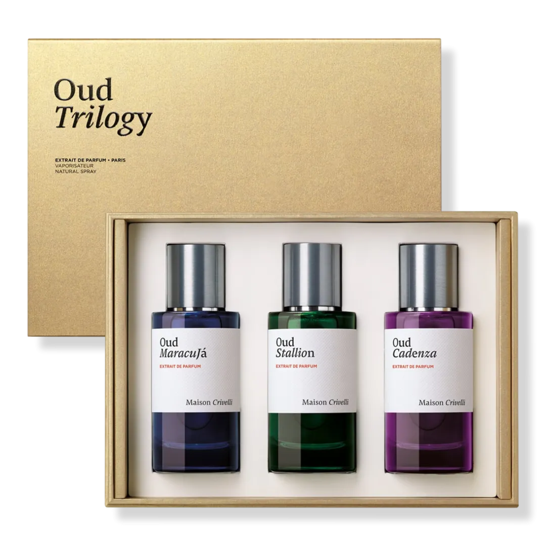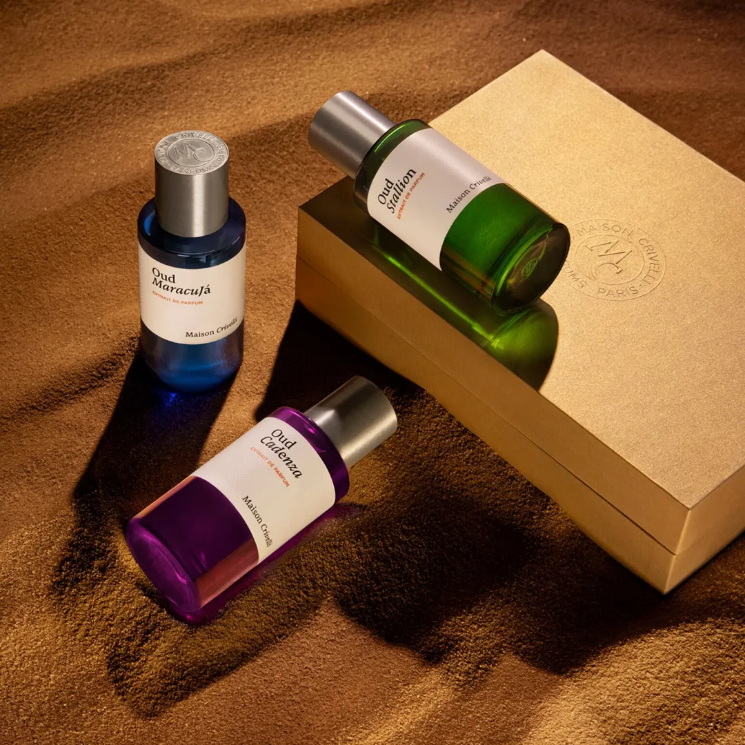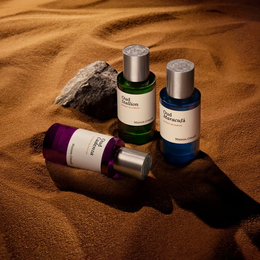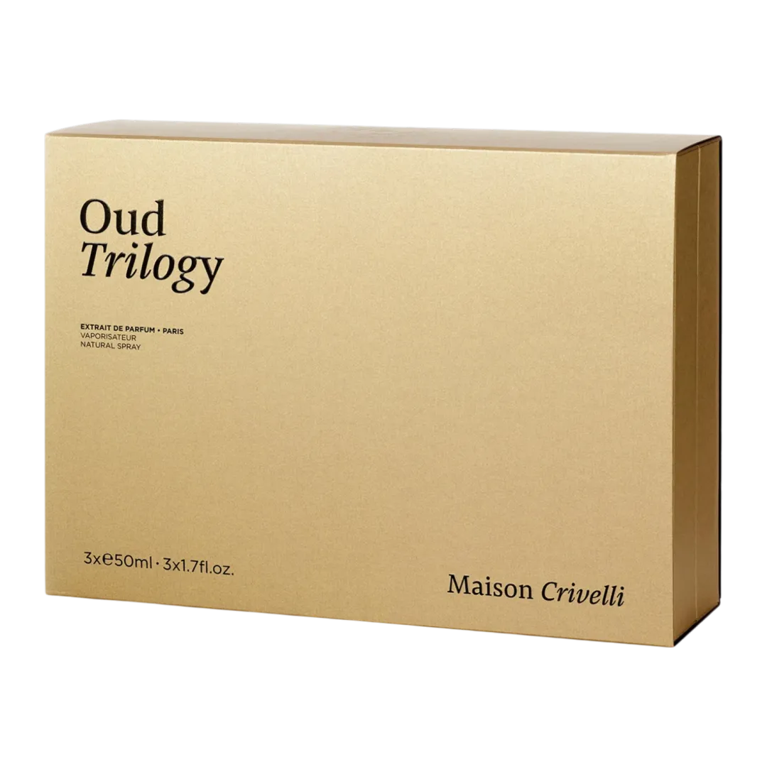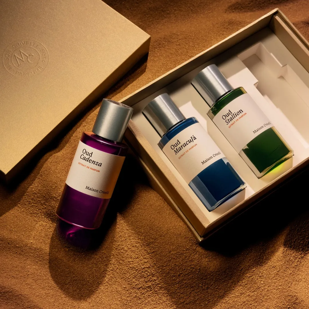 Ця трилогія включає флакони об’ємом 50 мл усіх трьох парфумерних екстрактів на основі уду від Maison Crivelli: Oud Maracujá, Oud Stallion та Oud Cadenza.