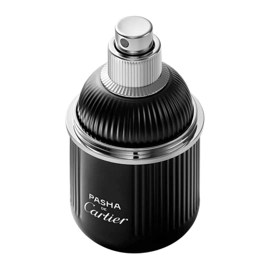 Ольфакторна пірамідка Pasha de Cartier Edition Noire включає тонізуючі свіжістю цитрусові акорди, що розчиняються в теплих пульсаціях деревних нот. База композиції виражена делікатним у своїй анімалістичності звучанням амбри, що зігріває теплим сяйвом бурштину.