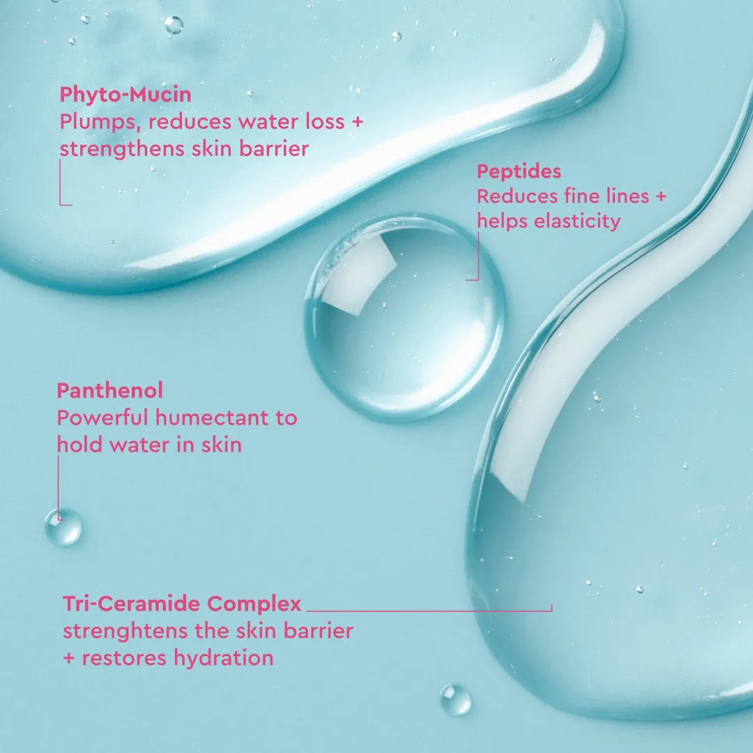 Ця щоденна суперсироватка — ваш універсальний засіб для ефекту «скляної шкіри». Вона робить шкіру більш пружною, зволоженою та зміцнює її бар’єр. Легка, нелипка формула швидко вбирається та слугує основою для бездоганного макіяжу, залишаючи шкіру гладкою, сяючою та з покращеною еластичністю.