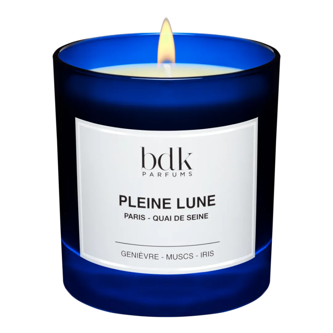 Ароматична свічка Pleine Lune від BDK Parfums — це мускусний квітковий аромат, який перенесе вас у нічну прогулянку вздовж набережної Сени. Ця свічка відкривається ніжними свіжими нотами ягід ялівцю та оксамитовим відтінком персика. Серце аромату розкриває елегантність ірису та листя фіалки, додаючи вишуканого квіткового тепла. База з нотками дайму, ванілі та м'якого мусу забезпечує глибоке, заспокійливе завершення, ідеальне для розслаблюючого моменту.