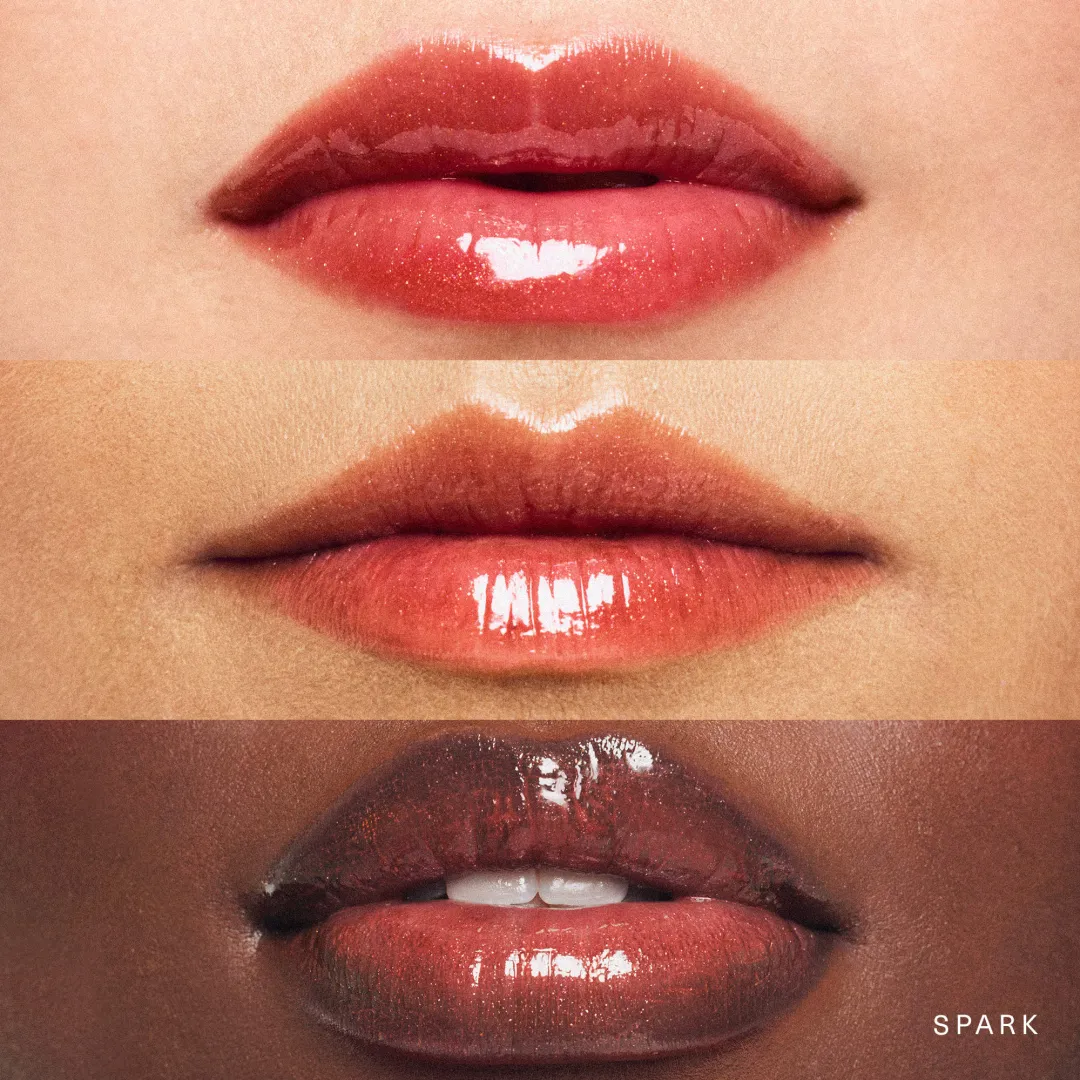 SPARK: Hydrogenated Polyisobutene, Diisostearyl Malate, Polyglyceryl-2 Triisostearate, Bis-Behenyl/Isostearyl/Phytosteryl Dimer Dilinoleyl Dimer Dilinoleate, Calcium Aluminum Borosilicate, Silica Dimethyl Silylate, Synthetic Wax, 1,2-Hexanediol, Sorbitan Isostearate, Fragrance (Parfum), Tin Oxide, Limonene, Linalool, Benzaldehyde, Geranyl Acetate, Citrus Aurantium Amara (Bitter Orange) Peel Oil, Titanium Dioxide (CI 77891), Iron Oxides (CI 77491), Iron Oxides (CI 77499), Red 7 Lake (CI 15850), Blue 1 Lake (CI 42090).