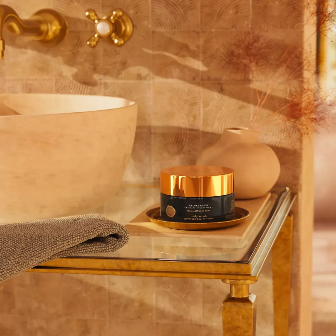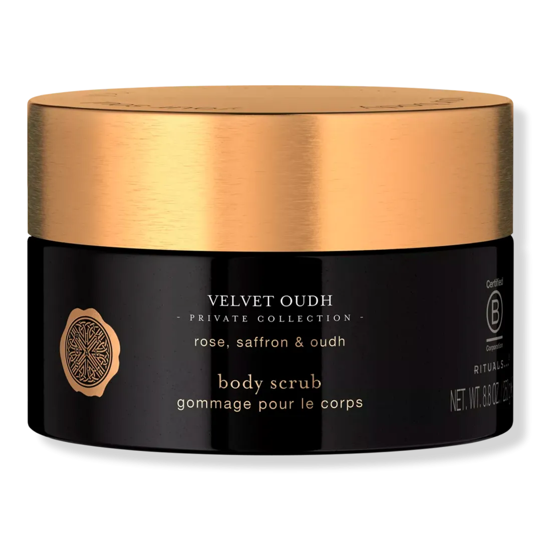 Перший скраб для тіла з колекції Private Collection, Velvet Oudh, містить розкішну суміш цукру, насичених олій і дрібних пелюсток троянд. Олії авокадо, аргана і макадамії відновлюють рівень зволоження шкіри, надаючи їй здоровий блиск. Олії солодкого мигдалю та жожоба глибоко живлять шкіру, запобігаючи її пересиханню. Насичений аромат шафрану з нотками троянди та базовою нотою розкішного уду. Нанесіть скраб на вологу шкіру, щоб видалити тьмяні, сухі клітини, стимулювати оновлення шкіри та поліпшити колір обличчя і кровообіг. Завершіть процедуру догляду за тілом, нанісши крем для тіла Velvet Oudh.