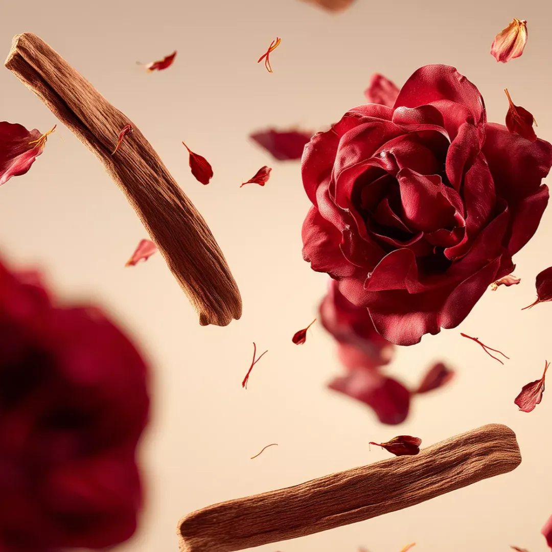 Sucrose, Carthamus Tinctorius (Safflower) Seed Oil, Isopropyl Myristate, Ethylhexyl Stearate, Persea Gratissima (Avocado) Oil, Prunus Amygdalus Dulcis (Sweet Almond) Oil, Parfum/Fragrance, Rosa Centifolia Flower, Rose Flower Oil/Extract, Crocus Sativus Flower Extract, Helianthus Annuus (Sunflower) Seed Oil, Simmondsia Chinensis (Jojoba) Seed Oil, Argania Spinosa Kernel Oil, Macadamia Integrifolia Seed Oil, Tocopherol, Caprylic/Capric Triglyceride, Citric Acid, Tetramethyl Acetyloctahydronaphthalenes, Pogostemon Cablin Oil, Vanillin, Citronellol, Beta-Caryophyllene, Citrus Limon Peel Oil, Limonene, Linalyl Acetate