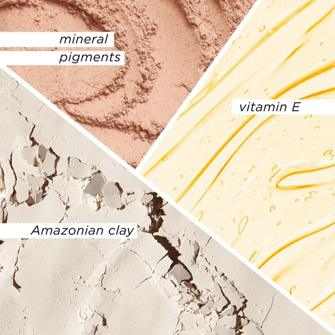 Dimethicone, trimethylsiloxysilicate, synthetic wax, behenyl dimethicone/bis-vinyldimethicone crosspolymer, phenylpropyldimethylsiloxysilicate, disiloxane, polyethylene, C20- 24 olefin, lecithin, disteardimonium hectorite, tocopherol, ascorbyl palmitate, propylene carbonate, dicalcium phosphate, mica, calcium sodium borosilicate, citric acid, kaolin, iron oxides (CI 77491, CI 77499).