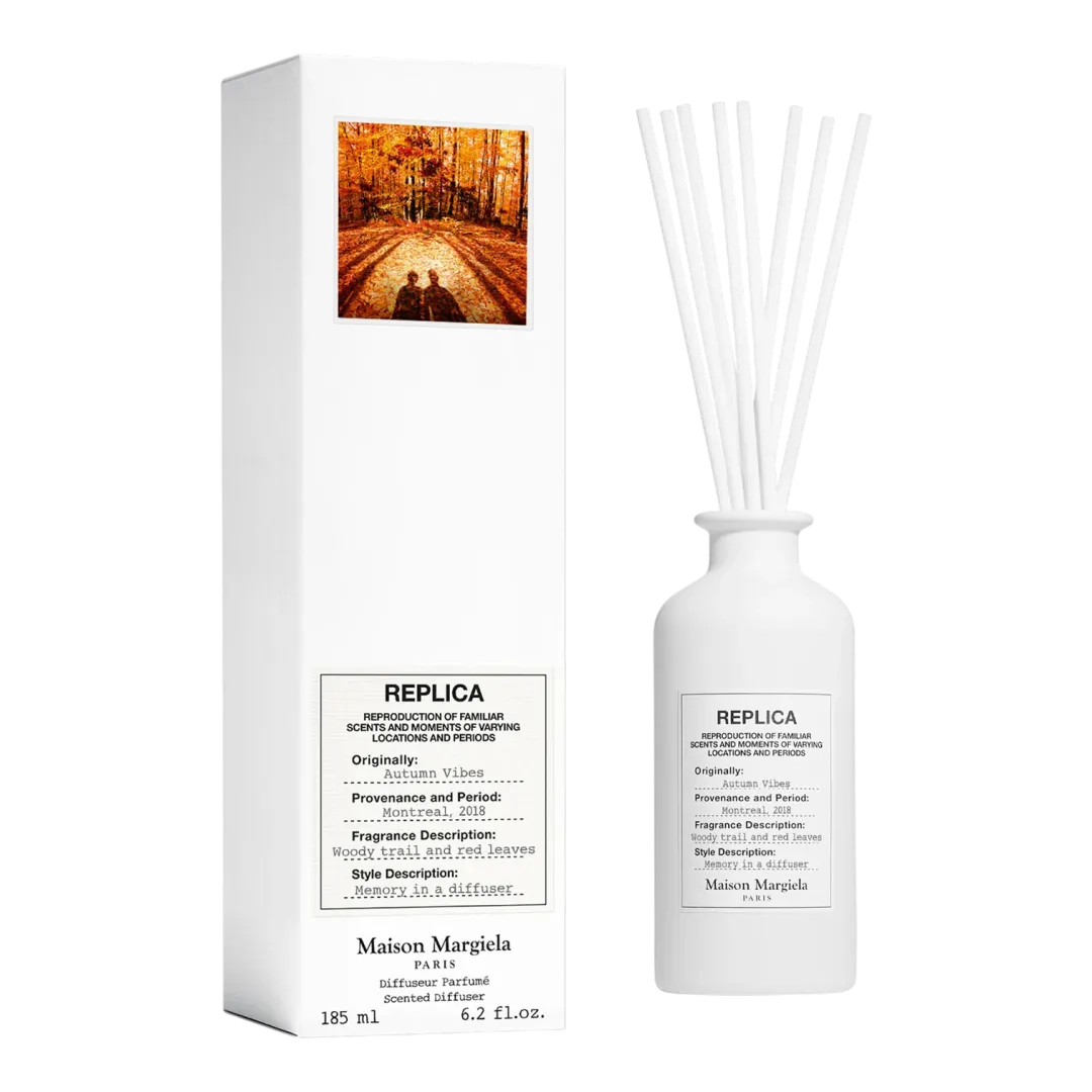 Дифузор Autumn Vibes — це і аромат, і декоративний акцент для вашого дому завдяки повністю білій мінімалістичній пляшці та культовій етикетці REPLICA, що є символом Maison Margiela.