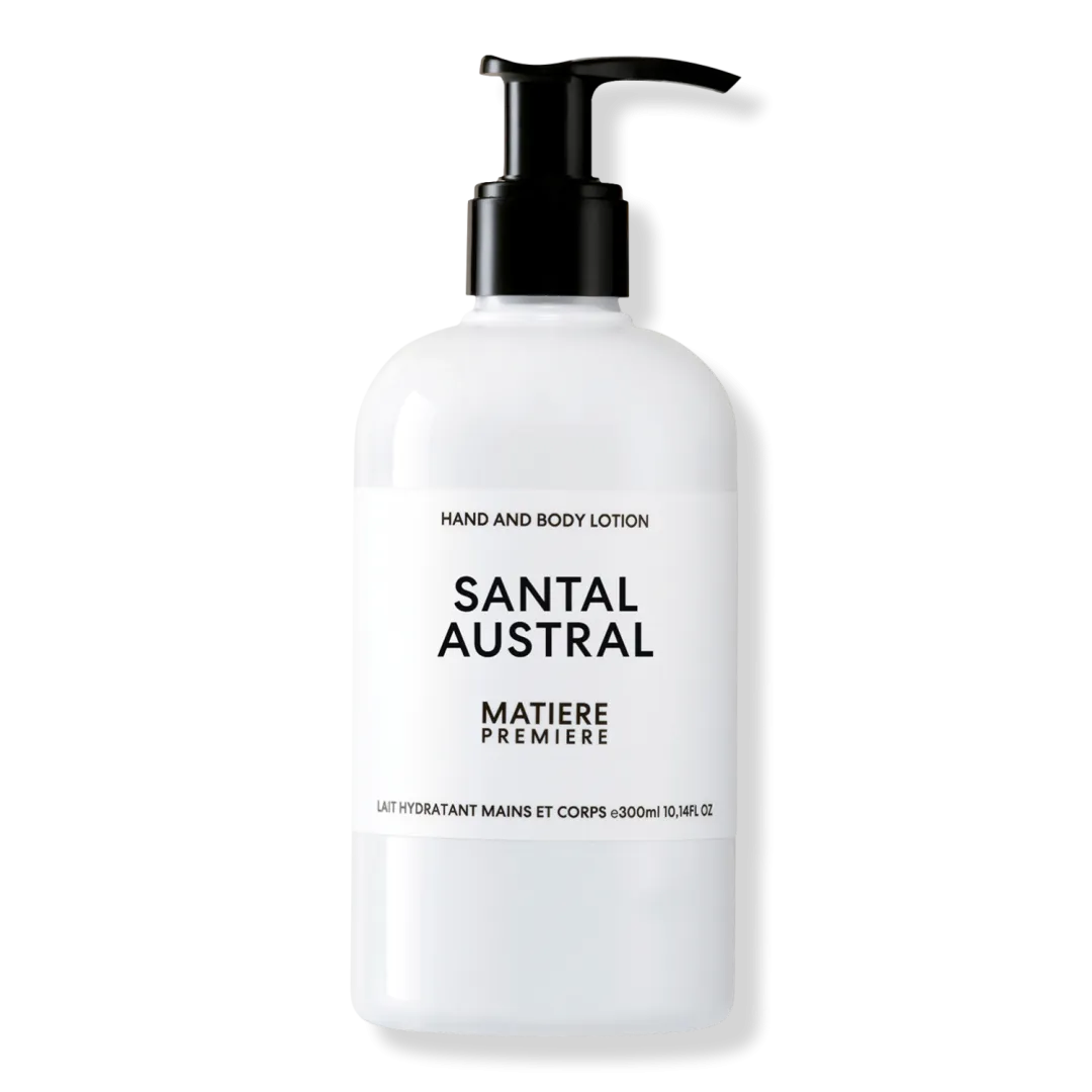 Цей лосьйон для рук і тіла легко вбирається, надаючи шкірі атласну м'якість та аромат з деревними кремовими нотами Santal Austral.