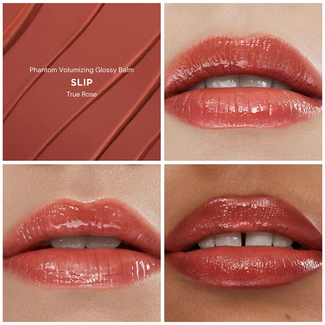 Phantom Volumizing Glossy Balm у відтінку Slip — універсальний 3-в-1 засіб, що зволожує як бальзам, надає об’єму для візуально більш пухких губ та дарує дзеркальний блиск, як у блиску для губ.