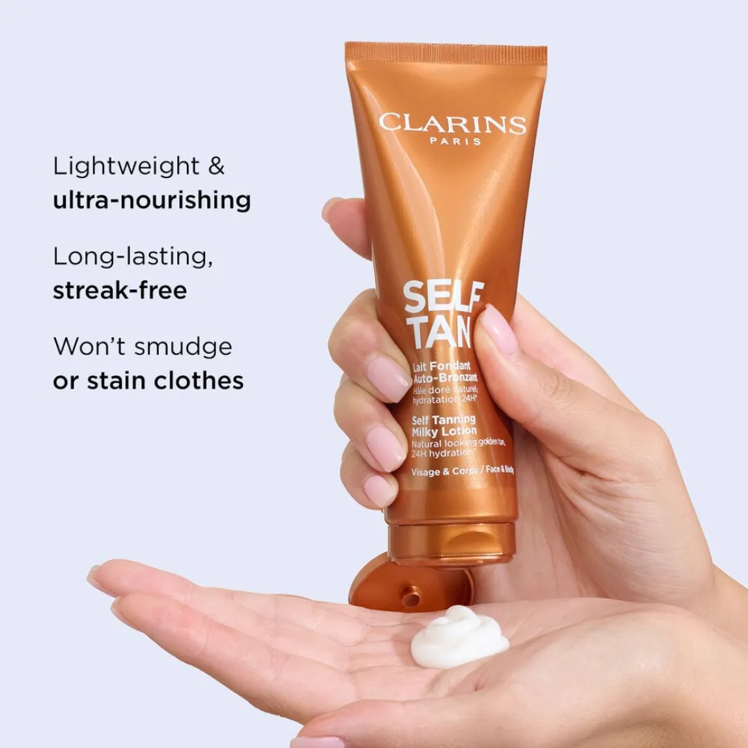 Clarins Self-Tanning Milky Lotion Face + Body Tanner Ультразволожуючий лосьйон для автозасмаги для обличчя та тіла 125 ml