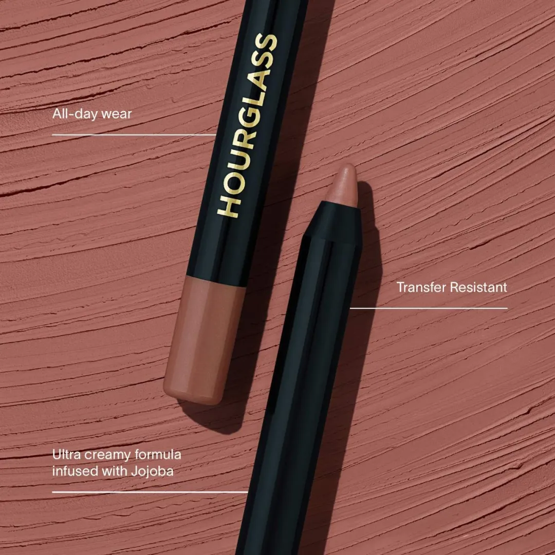 Відчуйте повне покриття кольором, який не розмазується, не розпливається і не вицвітає. Цей надзвичайно кремовий, високопігментований олівець для губ, збагачений живильною олією жожоба, легко наноситься на губи, не пропускаючи і не тягнучи шкіру, що дозволяє точно нанести його для створення ефекту повніших губ.