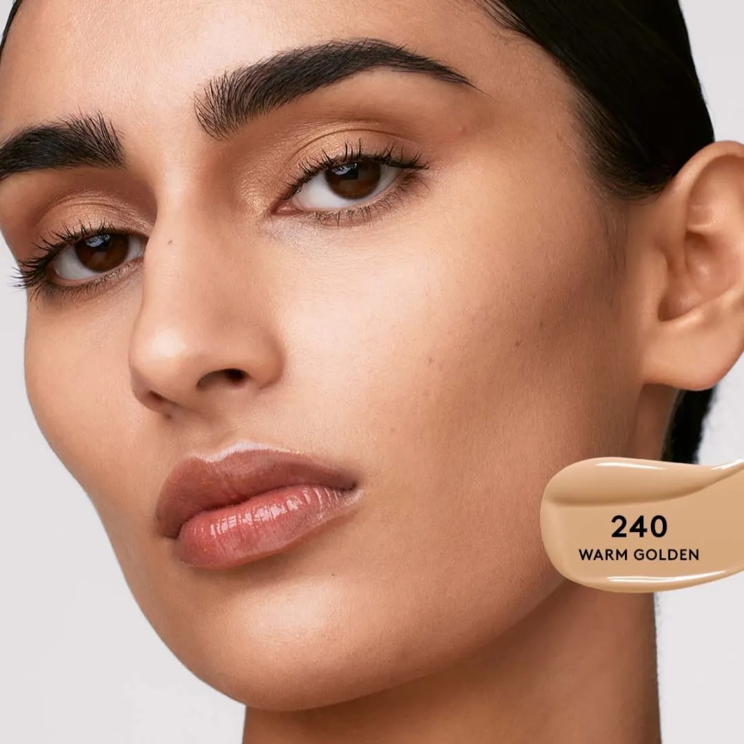 Засвітись у своєму найкращому світлі. Тональний крем із середнім ступенем покриття, який дарує сяйво «золотої години» протягом усього дня і зберігає свіжість. Зволожує, освітлює та покращує тон шкіри як миттєво, так і з часом, при цьому стійкий до поту, вологи та перенесення. Ця легка, водонепроникна формула миттєво зменшує видимий блиск і дарує абсолютно новий тип сяйва. Це саме те, що треба, природне сяйво у флаконі.