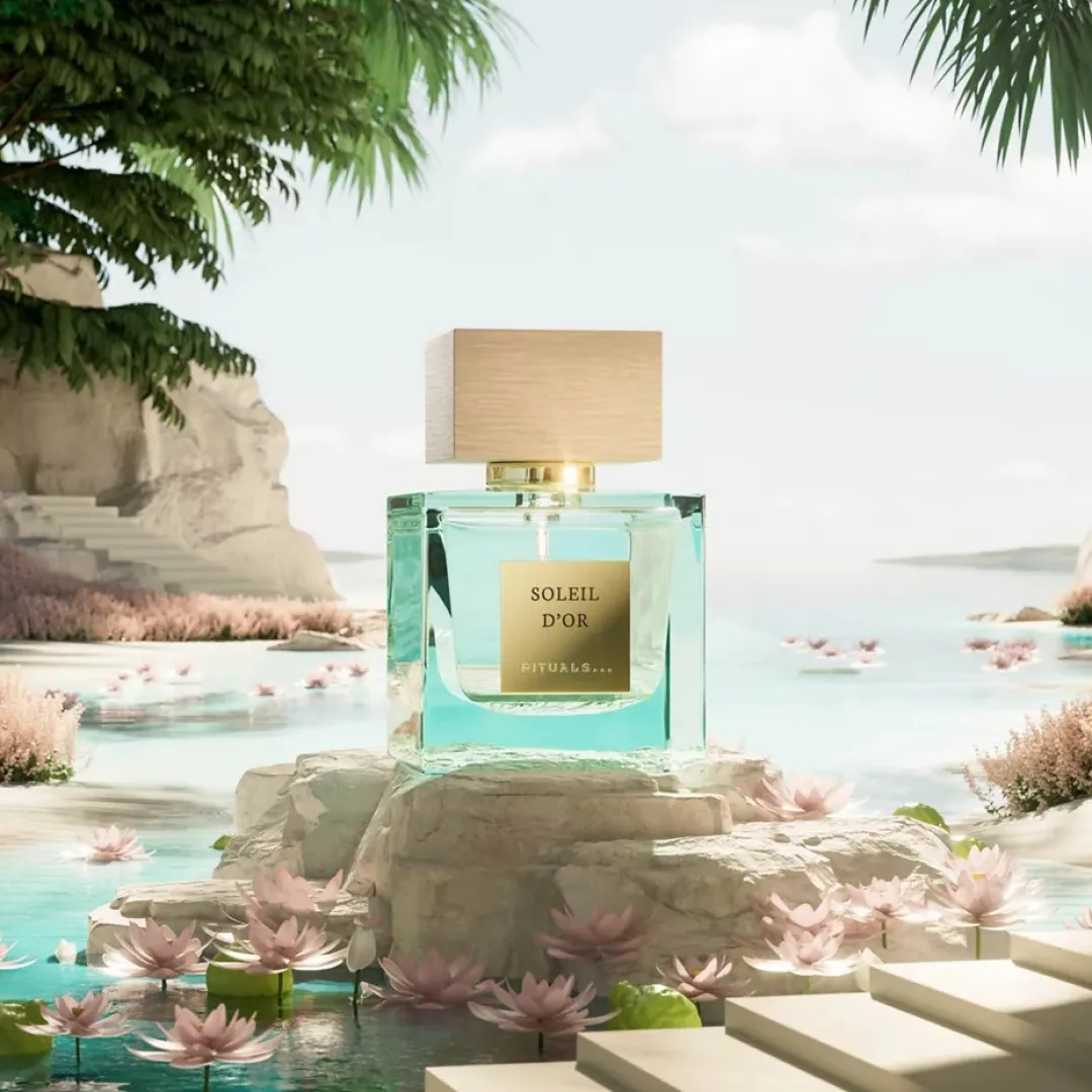 Цей життєрадісний аромат перенесе вас на прекрасне узбережжя Індії, де сонячні промені зігрівають золотий пісок і води відтінку бірюзи. Soleil d'Or випромінює позитивну енергію та освіжає. Аромат відкривається оптимістичним і бадьорим акордом груші, мандарина та бергамота. Цей подих свіжості підкреслюють свіжі квіткові ноти фрезії та лотоса. Доповнює композицію тривалий, але водночас тонкий аромат кедра і мускусу. Ця чудова, витончена композиція належить до сімейства свіжих ароматів. Флакон туристичного розміру можна легко наповнити парфумами зі стандартного флакона.