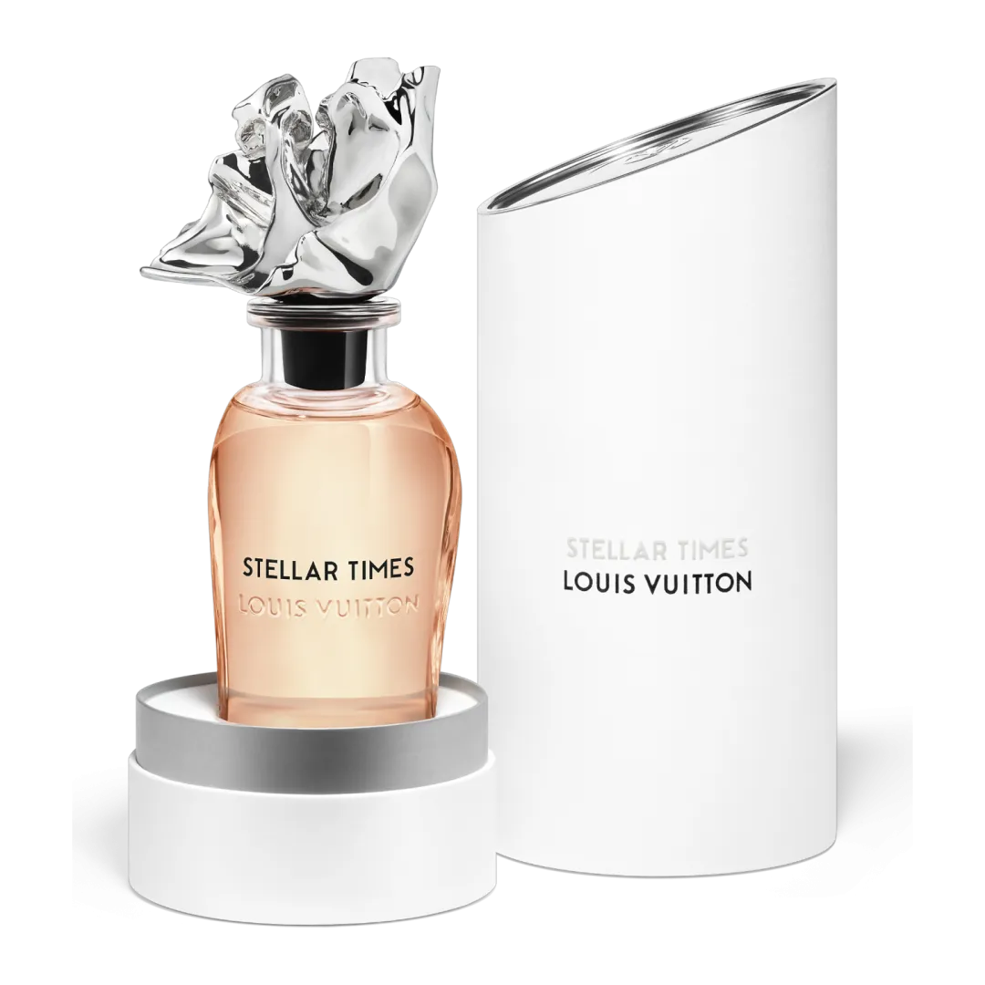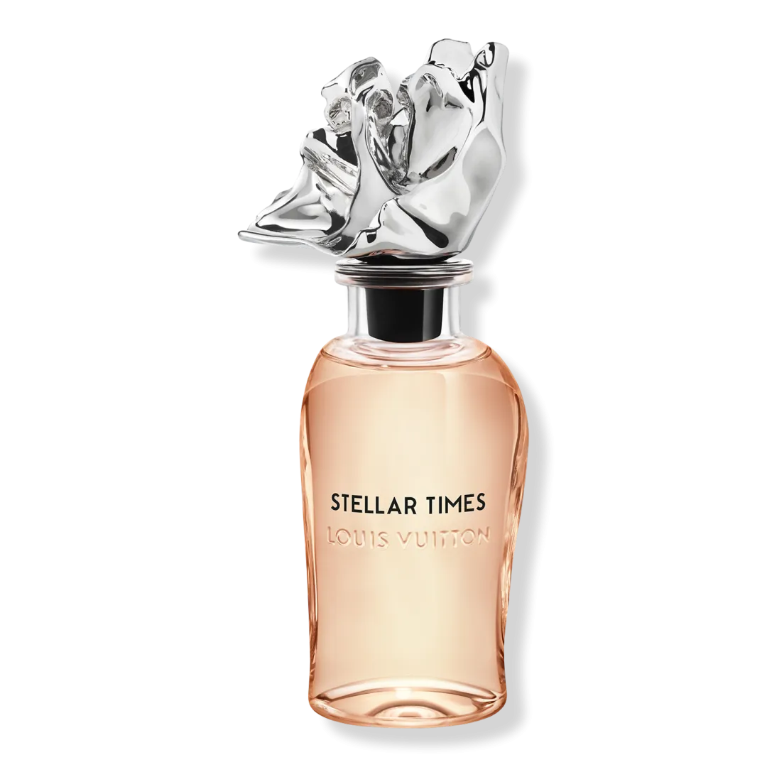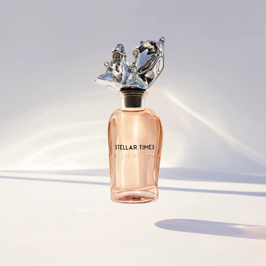Stellar Times входить до колекції Louis Vuitton Les Extraits, що виражає зустріч двох великих творчих умів. За допомогою цих п'яти виняткових, висококонцентрованих ароматних скарбів Жак Кавальє Беллетруд переосмислює парфумерну екстрактну воду з сміливістю та плавністю.