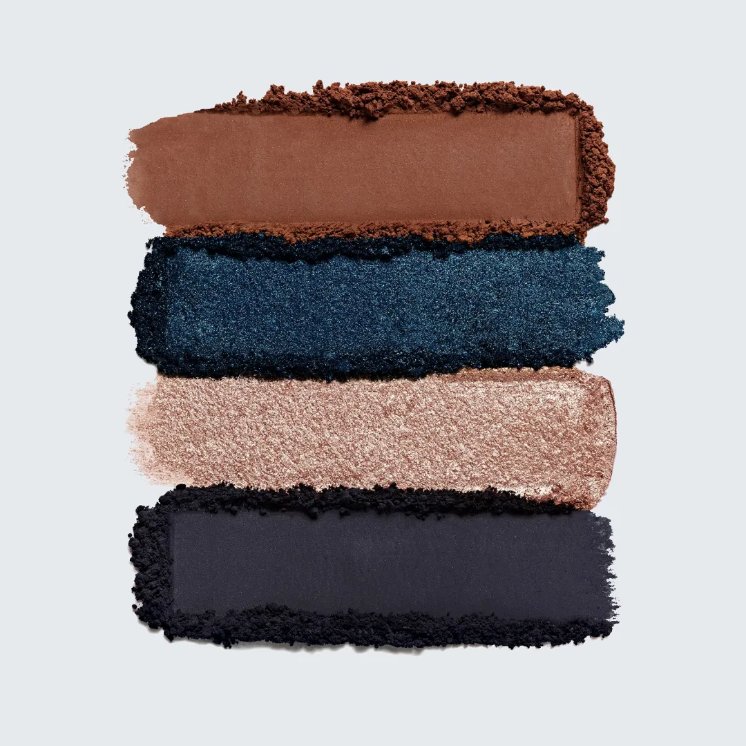 палітра з декількома відтінками: теплий карамель (матовий), холодний кобальт (металічний), нейтральний шампань (блискучий) і холодний глибокий синій (матовий)Poolside