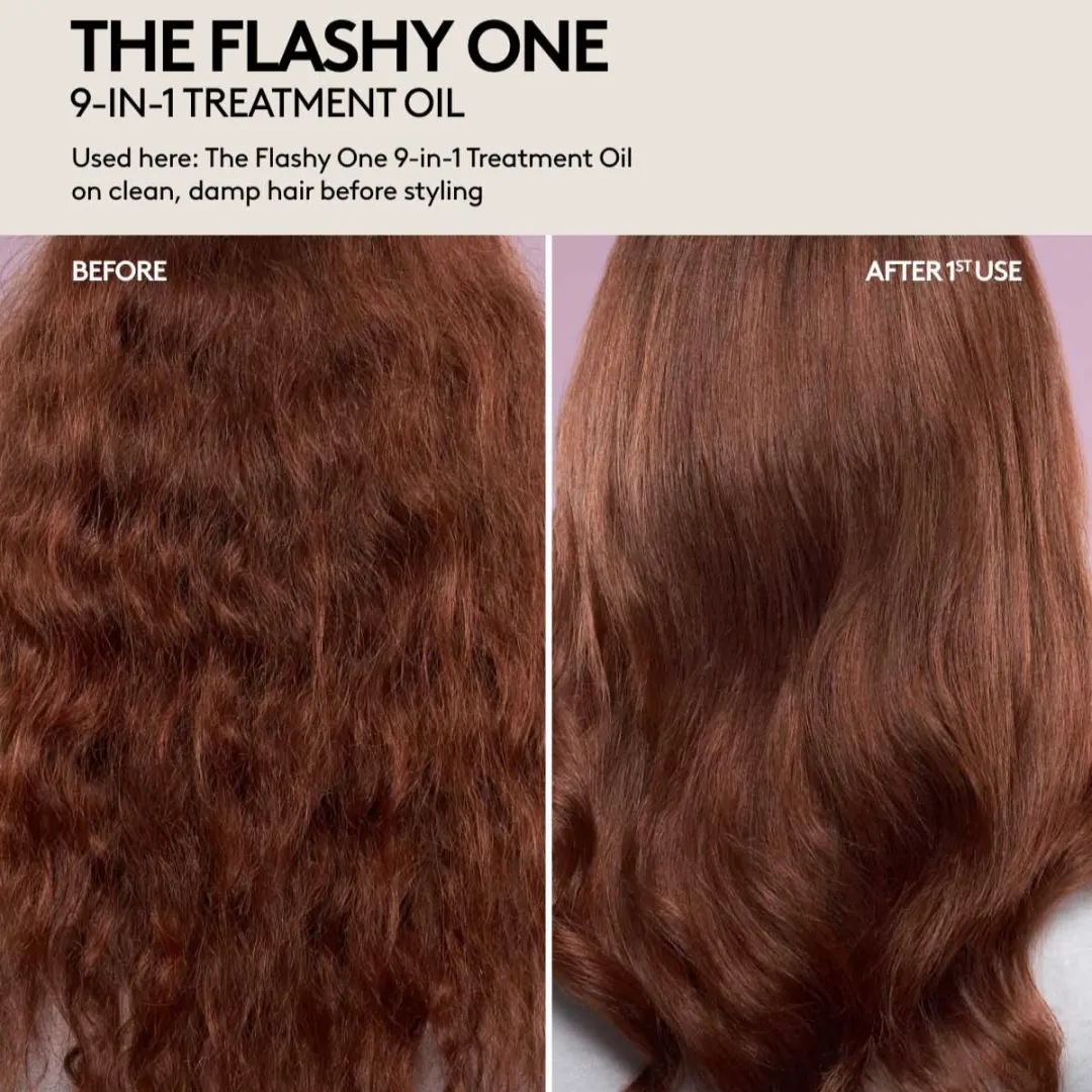 Ця олійка для догляду — ваш незамінний помічник у перетворенні сухого, пошкодженого волосся та додаванні найяскравішого завершального штриху до будь-якої зачіски. Ця олія «9 в 1», що просто переповнена корисними властивостями, зволожує, миттєво додає блиску, розгладжує кучерявість на строк до 72 годин, заклеює посічені кінчики, зменшує ламкість, відновлює та захищає від пошкоджень, забезпечує захист від високих температур до 450°F, покращує еластичність та живить. Просто струсіть, щоб все змішалося, і ви отримаєте волосся, яким не зможете не похвалитися.