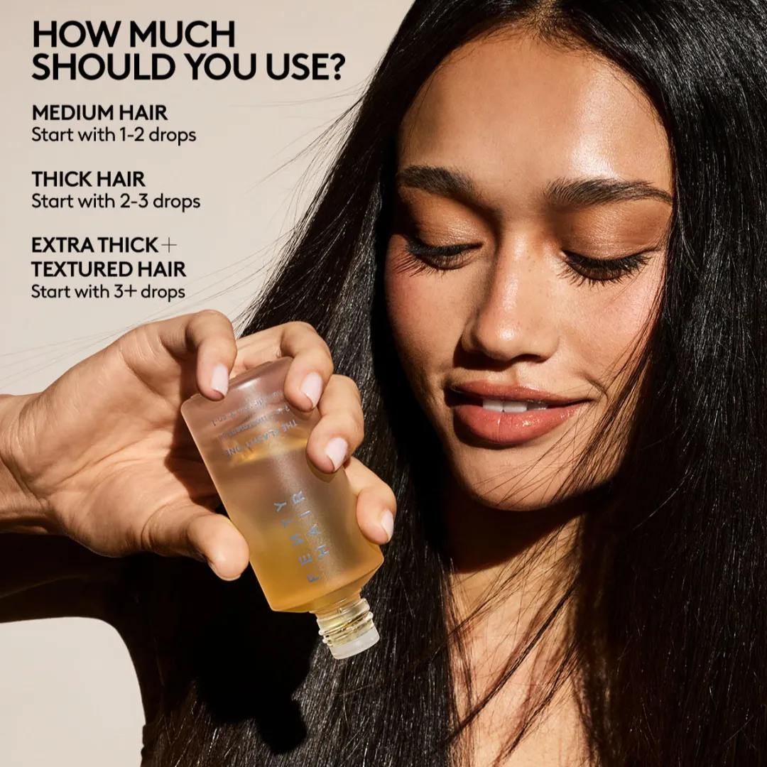 Почніть з 1-2 крапель, нанесіть на долоні та рівномірно розподіліть олію, зосередившись на середній частині та кінчиках, щоб додати блиску та згладити кучерявість і неслухняне волосся. Додайте більше за потреби, залежно від довжини та густоти волосся.