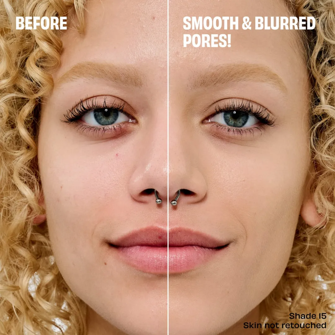 Згладжуючий, розмиваючий, некомедогенний тональний крем із середнім, легким покриттям, що містить ніацинамід, який з часом покращує вигляд пор і шкіри. Цей тональний крем, що вирівнює текстуру шкіри та покращує вигляд пор миттєво і з часом, діє протягом усього дня, має 24-годинну стійкість і зволожуючу дію, не викликає акне і містить екстракт шипшини та гліцерин. Покриття, яке можна нарощувати і яке не вицвітає, забезпечує комфорт для шкіри протягом усього дня.