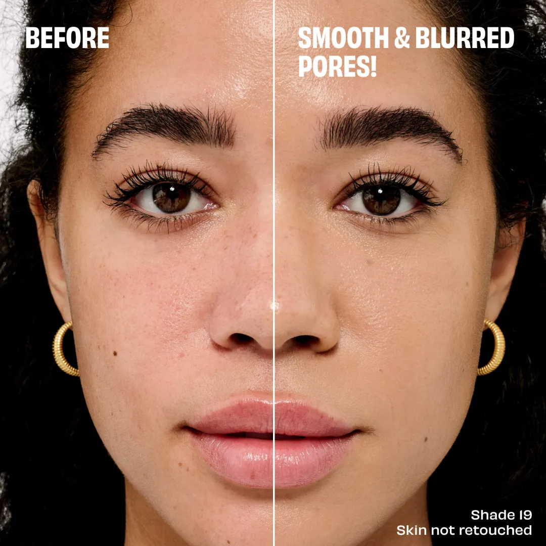 Згладжуючий, розмиваючий, некомедогенний тональний крем із середнім, легким покриттям, що містить ніацинамід, який з часом покращує вигляд пор і шкіри. Цей тональний крем, що вирівнює текстуру шкіри та покращує вигляд пор миттєво і з часом, діє протягом усього дня, має 24-годинну стійкість і зволожуючу дію, не викликає акне і містить екстракт шипшини та гліцерин. Покриття, яке можна нарощувати і яке не вицвітає, забезпечує комфорт для шкіри протягом усього дня.