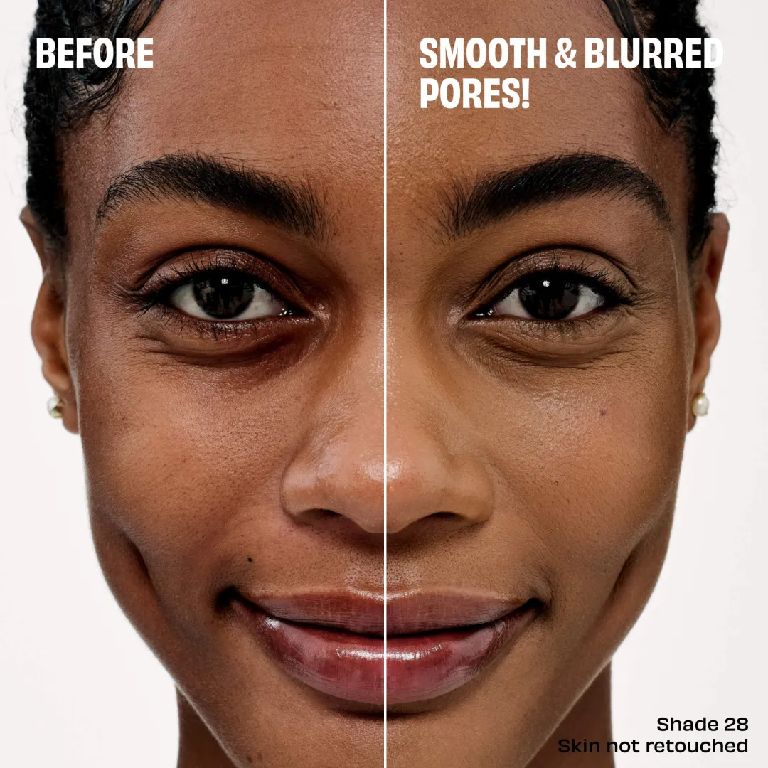 Згладжуючий, розмиваючий, некомедогенний тональний крем із середнім, легким покриттям, що містить ніацинамід, який з часом покращує вигляд пор і шкіри. Цей тональний крем, що вирівнює текстуру шкіри та покращує вигляд пор миттєво і з часом, діє протягом усього дня, має 24-годинну стійкість і зволожуючу дію, не викликає акне і містить екстракт шипшини та гліцерин. Покриття, яке можна нарощувати і яке не вицвітає, забезпечує комфорт для шкіри протягом усього дня.