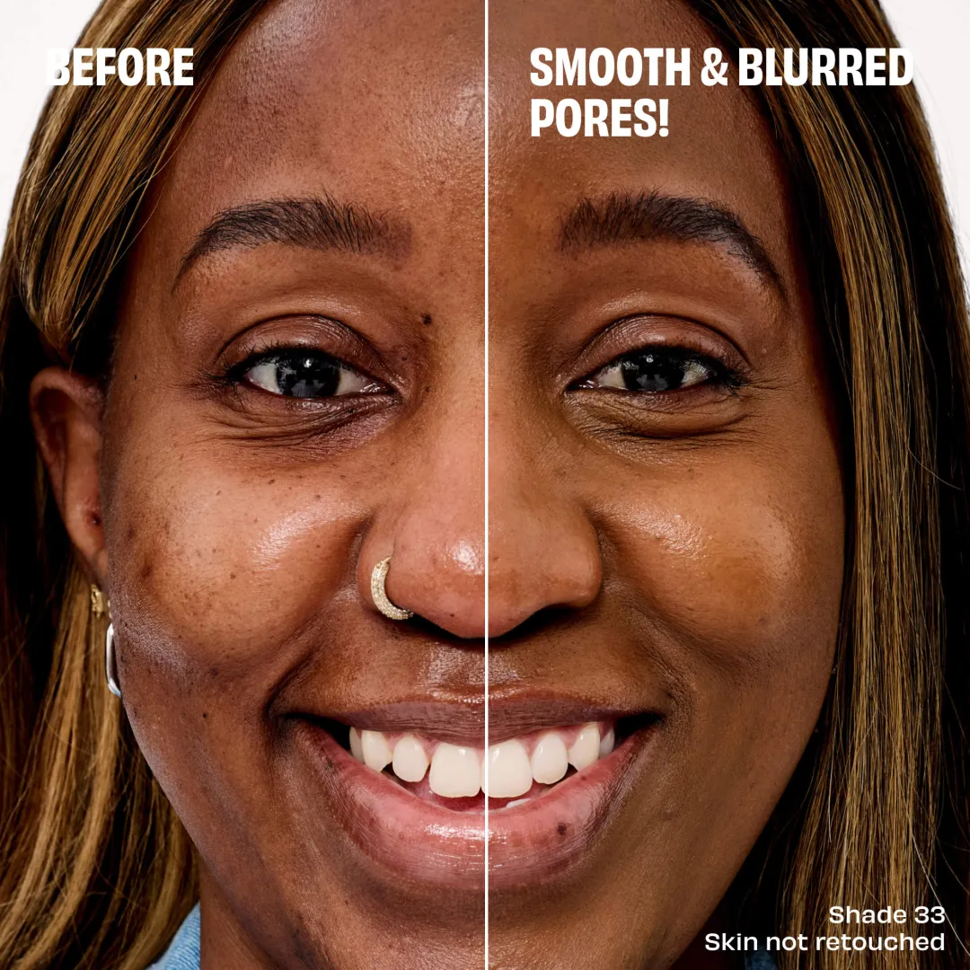 Згладжуючий, розмиваючий, некомедогенний тональний крем із середнім, легким покриттям, що містить ніацинамід, який з часом покращує вигляд пор і шкіри. Цей тональний крем, що вирівнює текстуру шкіри та покращує вигляд пор миттєво і з часом, діє протягом усього дня, має 24-годинну стійкість і зволожуючу дію, не викликає акне і містить екстракт шипшини та гліцерин. Покриття, яке можна нарощувати і яке не вицвітає, забезпечує комфорт для шкіри протягом усього дня.