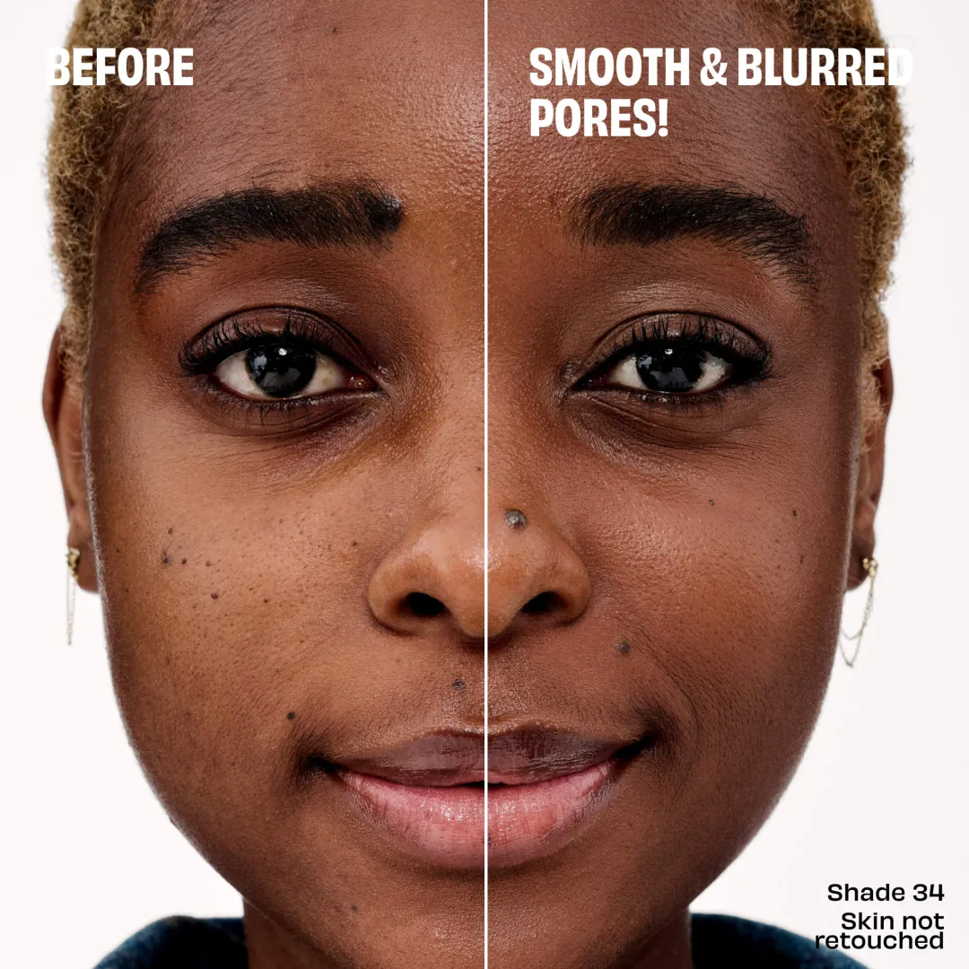 Згладжуючий, розмиваючий, некомедогенний тональний крем із середнім, легким покриттям, що містить ніацинамід, який з часом покращує вигляд пор і шкіри. Цей тональний крем, що вирівнює текстуру шкіри та покращує вигляд пор миттєво і з часом, діє протягом усього дня, має 24-годинну стійкість і зволожуючу дію, не викликає акне і містить екстракт шипшини та гліцерин. Покриття, яке можна нарощувати і яке не вицвітає, забезпечує комфорт для шкіри протягом усього дня.
