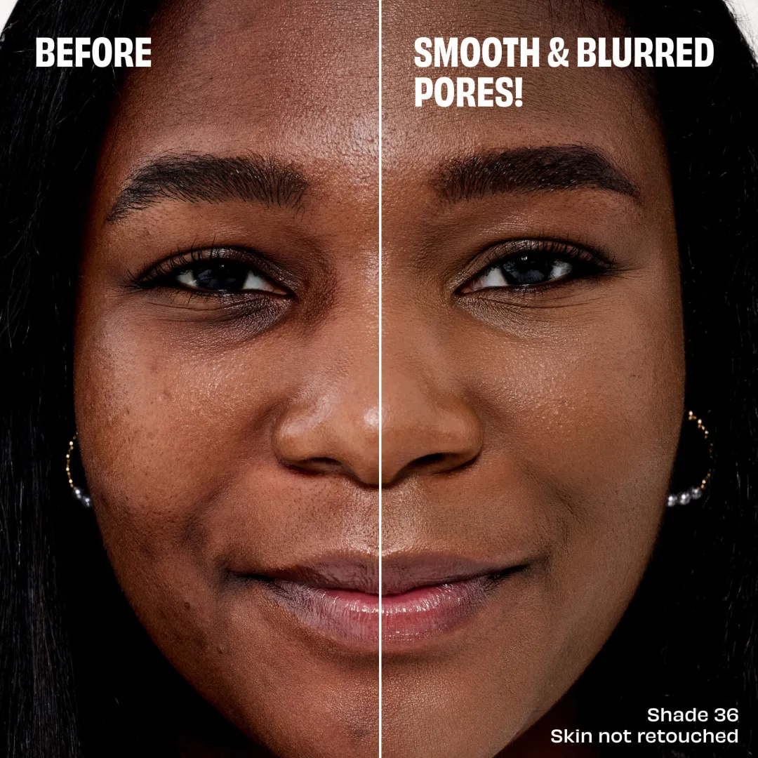 Згладжуючий, розмиваючий, некомедогенний тональний крем із середнім, легким покриттям, що містить ніацинамід, який з часом покращує вигляд пор і шкіри. Цей тональний крем, що вирівнює текстуру шкіри та покращує вигляд пор миттєво і з часом, діє протягом усього дня, має 24-годинну стійкість і зволожуючу дію, не викликає акне і містить екстракт шипшини та гліцерин. Покриття, яке можна нарощувати і яке не вицвітає, забезпечує комфорт для шкіри протягом усього дня.