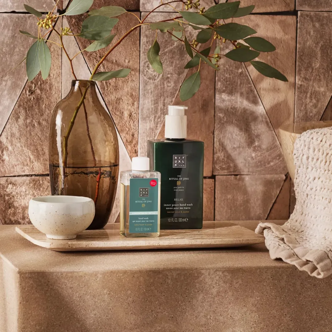 Перетворіть щоденне миття рук на приємний момент із рідким милом The Ritual of Jing. Формула на основі лотоса та жожоби має нейтральний pH, тому вона ніжно очищує руки, не подразнюючи їх. Поєднайте його з кремом для рук із тієї ж серії, щоб створити розкішний набір для елегантного розміщення на одному з стильних підносів Rituals.