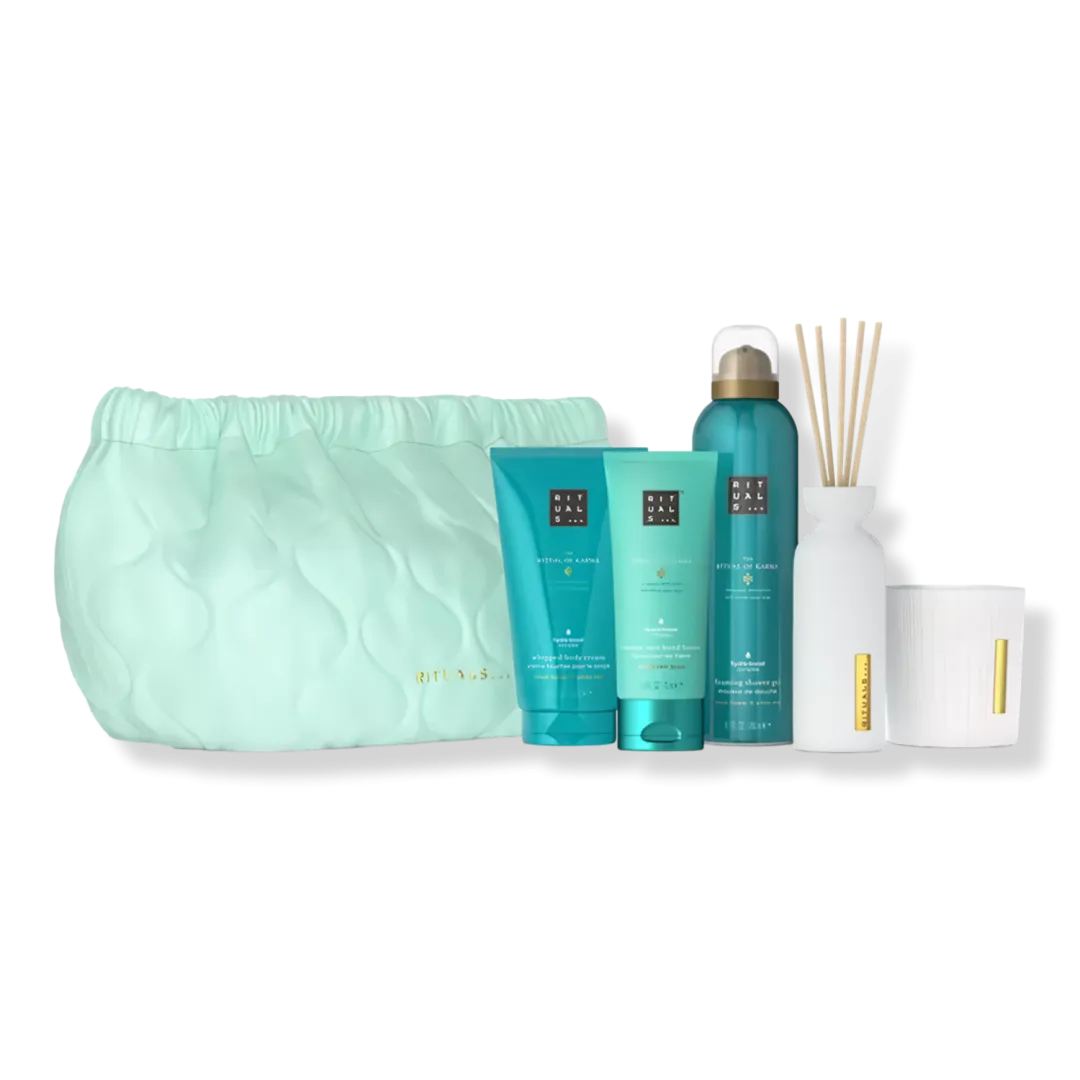 Піднесіть мистецтво дарування з цим ідеальним подарунком для друга, члена родини або себе! Відчуйте літній настрій протягом усього року з колекцією The Ritual of Karma, наповненою квітковим ароматом лотоса та білого чаю. Великий подарунковий набір містить пінку для душу, крем для тіла, лосьйон для рук, мініатюрні ароматичні палички та ароматичну свічку. Пінка та крем збагачені алоє вера, скваланом та водоростями, які інтенсивно зволожують шкіру та підтримують її природний баланс. Комплектна багаторазова косметичка ідеально підійде для подорожей — як зручна сумка для косметики або стильний клатч для завершення образу.