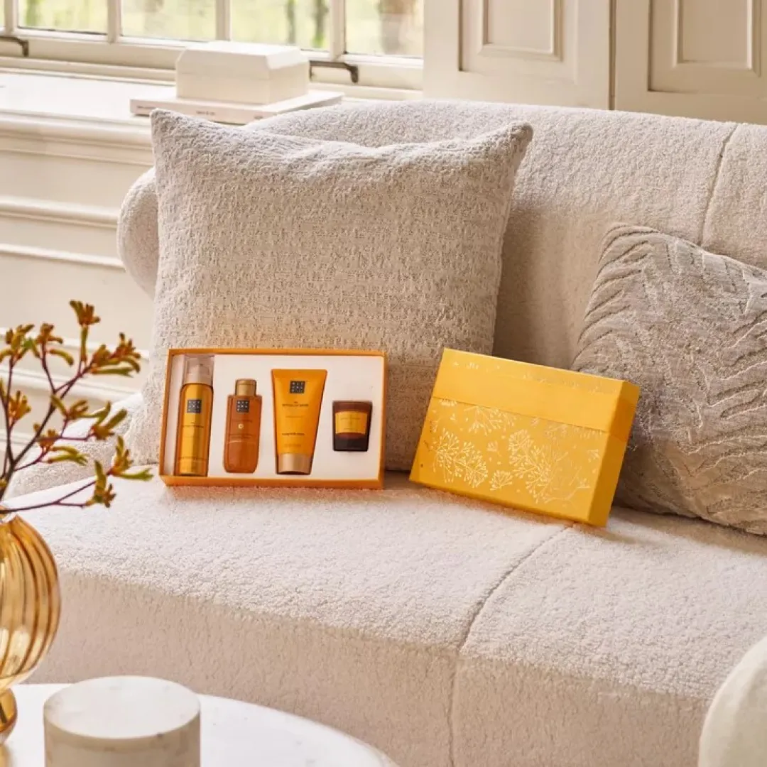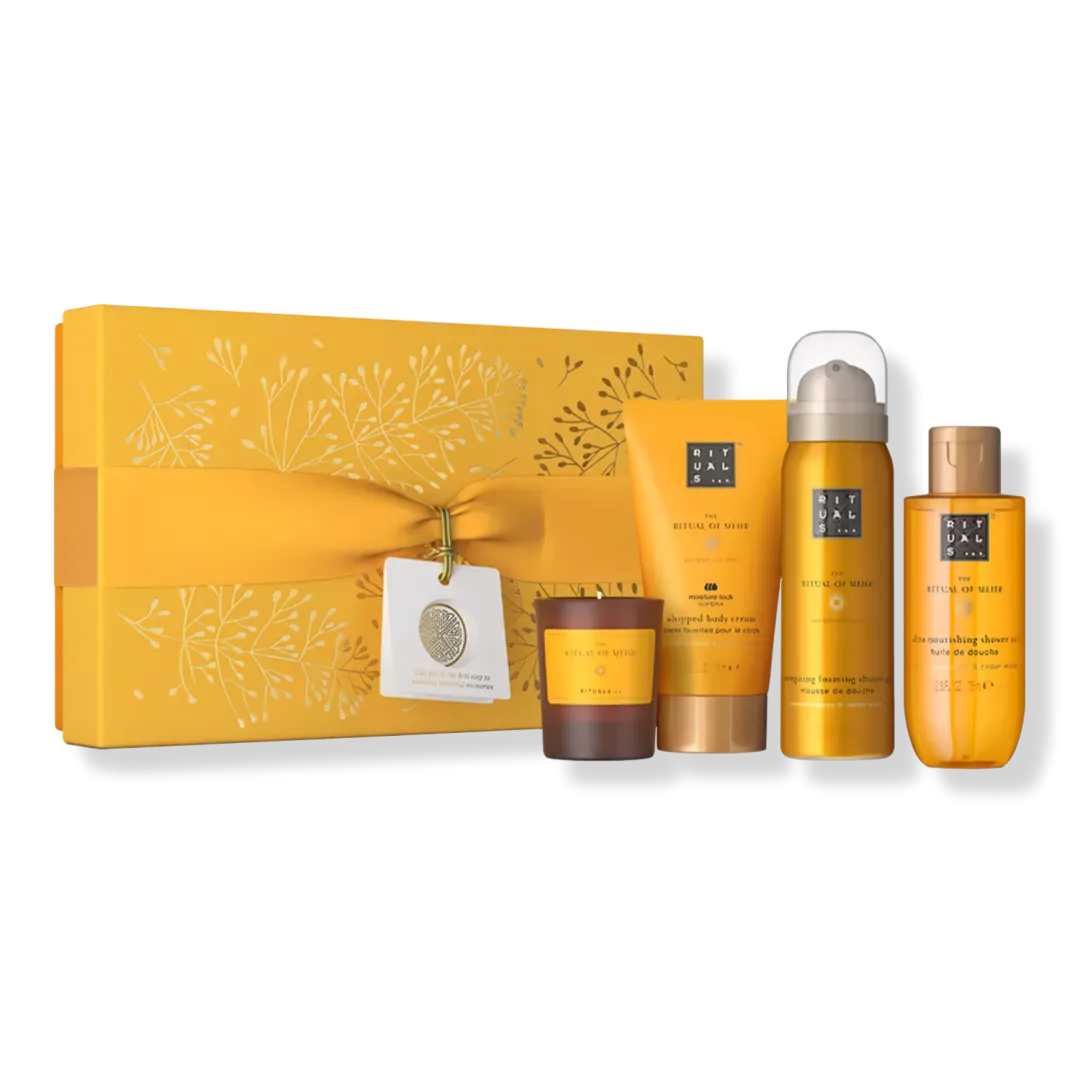 Ця чудова подарункова коробка стане ідеальним подарунком для друга чи члена родини або для того, щоб побалувати себе! Колекція Ritual of Mehr була створена, щоб зарядити енергією тіло, розум і душу. Наповнений солодким апельсиновим і кедровим деревом, кожен продукт у цій колекції для дому та тіла покращує настрій і наповнює серце щастям. Містить пінний гель для душу, олію для душу, крем для тіла та ароматичну свічку. Дизайн орігамі був натхненний японським мистецтвом дарування. У японській культурі упаковка подарунків може бути такою ж важливою, як подарунок, де подарунок розглядається як форма спілкування між дарувальником і одержувачем. Безкоштовній багаторазовій подарунковій коробці класу люкс можна дати друге життя, зберігаючи в ній фотографії, листи чи інші предмети.