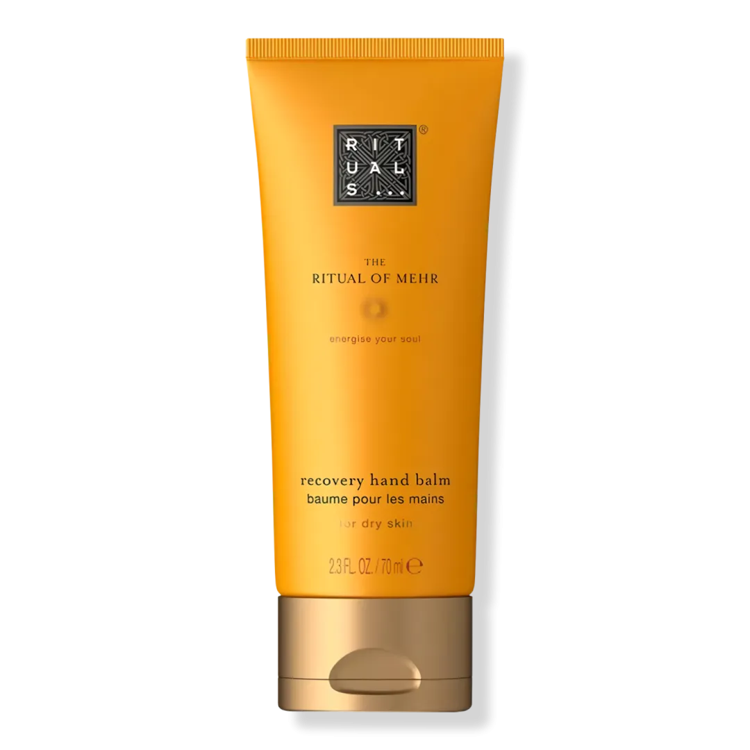 Регенеруючий крем для рук The Ritual of Mehr Recovery Hand Balm із абсолютно новою формулою, що містить активні інгредієнти з інтенсивним ефектом, які не шкодять мікробіому шкіри. Вони зміцнюють її захисний бар’єр, відновлюють рівновагу та забезпечують здоровий вигляд. Стимулюючий аромат солодкого апельсина та підбадьорливий аромат кедрового дерева заспокоять і живлять сухі долоні, а також пом'якшать шкірку навколо нігтів. Ароматична композиція поліпшить вам настрій. Продукт містить 97% інгредієнтів природного походження.