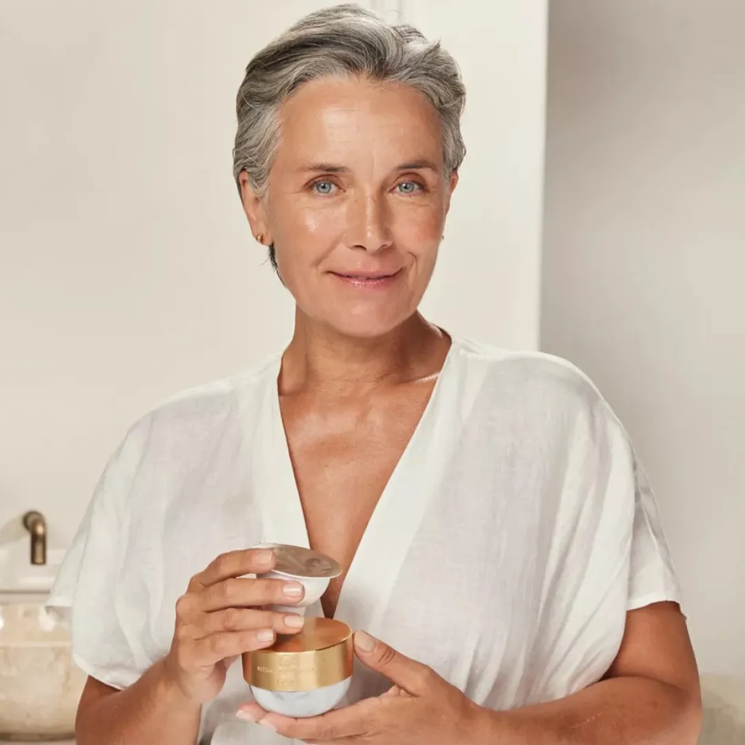 Шануйте свою природну красу щодня з цим активним зміцнюючим денним кремом. Цей насичений і розкішний зволожуючий крем з лінії Ageless від The Ritual of Namaste зміцнює пружність і еластичність вашої шкіри, допомагаючи помітно зменшити видимість зморшок і мімічних зморшок. Збагачена зміцнюючим комплексом CICA, його формула наповнює шкіру омолоджуючими та антивіковими властивостями і зміцнює її бар'єрну функцію.
