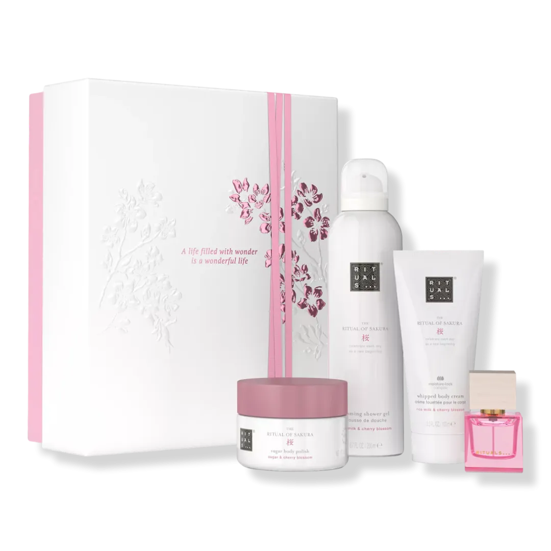 Подаруйте радість другу, члену родини або собі з The Ritual of Sakura Medium Gift Set! Усередині ви знайдете пінку для душу, скраб для тіла, крем для тіла та міні-парфуми. Починайте кожен день з новими силами завдяки продуктам, збагаченим екстрактом цвітіння сакури та рисовим молоком. Після розпакування розкішну багаторазову коробку можна використовувати для зберігання фотографій, листів або інших дорогих серцю речей.