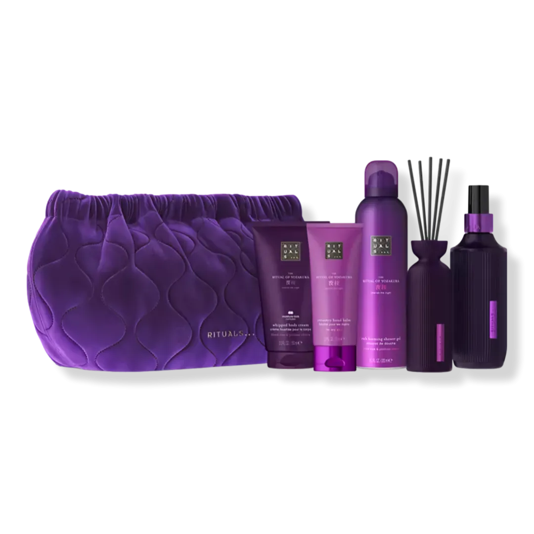 Натхненний японською традицією Yozakura — милуванням цвітом сакури вночі, — The Ritual of Yozakura Large Gift Set запрошує насолодитися кожною миттю. Усередині ви знайдете пінку для душу, крем для тіла, бальзам для рук, аромат для дому та міні ароматичні палички. Завдяки поєднанню вишні Йосіно, саке та екстракту чорного рису, цей набір створює унікальний і розкішний досвід догляду за собою.