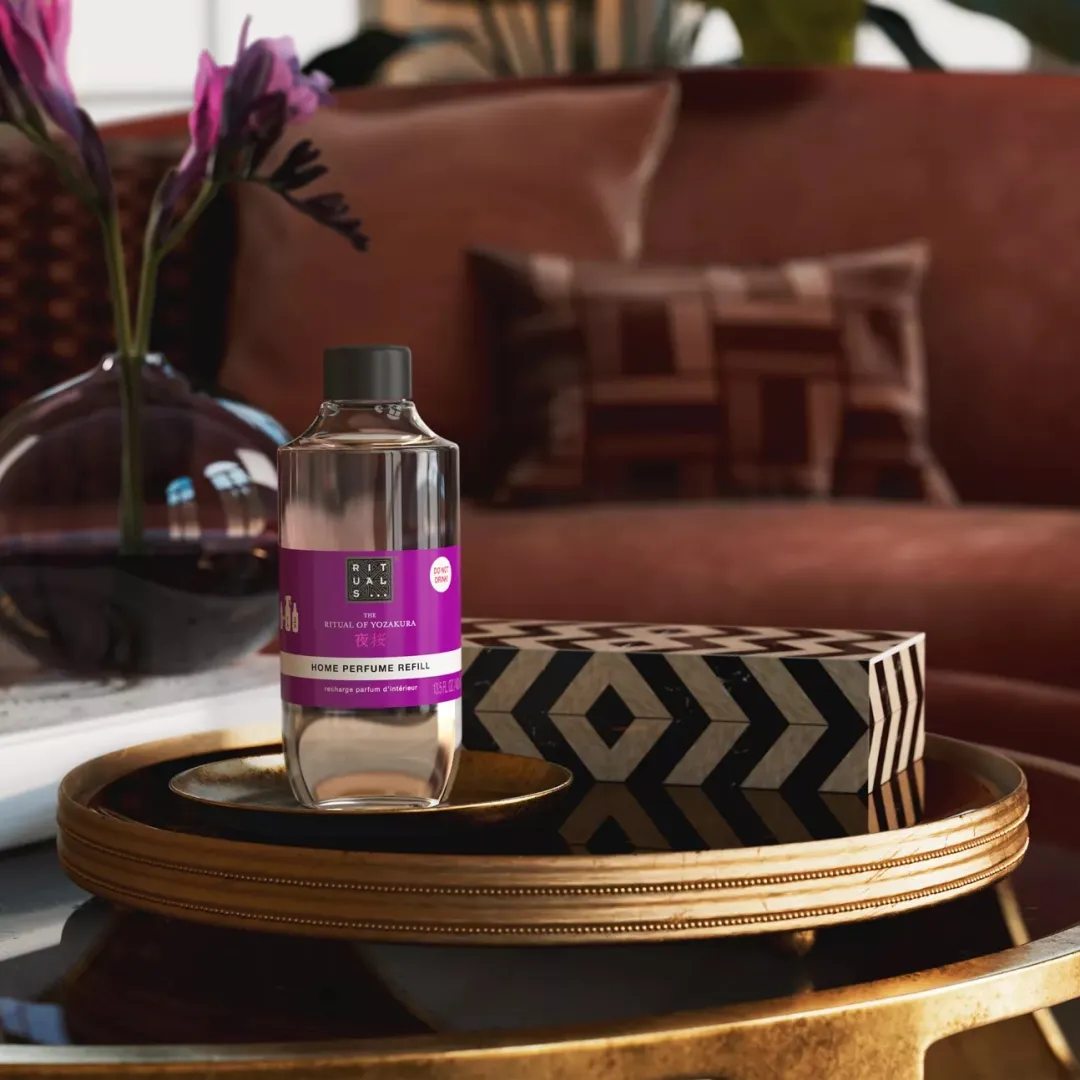 Освіжіть свій дім ароматом для дому з колекції The Ritual of Yozakura. Чуттєве поєднання білих квітів, ванілі, бобів тонка та ніжних фруктових нот вишні. Усе це упаковано у скляну пляшку, придатну для переробки, дизайн якої ідеально поєднується з ароматичними свічками та дифузорами з паличками.