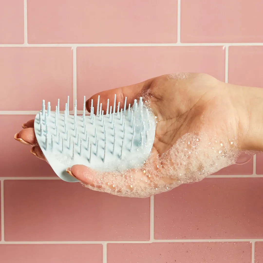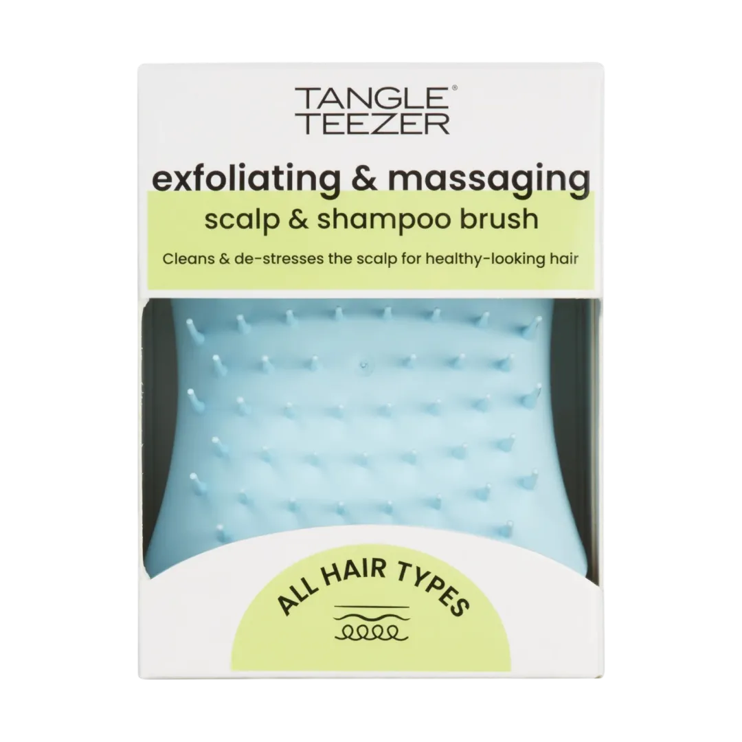 Tangle Teezer The Scalp Exfoliator and Massager Coastal Blue - багатофункціональна щітка для масажу голови. Завдяки зубчикам двох розмірів щітка виконує відразу дві функції: очищення і масаж. Довгі гнучкі зубчики допомагають очистити шкіру голови, видаляючи ороговілі частинки шкіри і надаючи м'яку відлущувальну дію. Для інтенсивного очищення використовуйте в парі з шампунем. Короткі щільні зубчики приємно масажують шкіру голови, що знімає загальну напругу, а також сприяє поліпшенню кровообігу і росту волосся. Розмір, форма і розташування зубчиків підібрані таким чином, що пасма не плутаються під час використання щітки. Завдяки ергономічній формі та матовому покриттю щітку зручно тримати в руці, і вона не вислизає під час контакту з водою. Підходить для застосування на вологому і сухому волоссі. Не призначена для розчісування волосся, а також для використання на запаленій і чутливій шкірі. Не використовуйте з феном.
