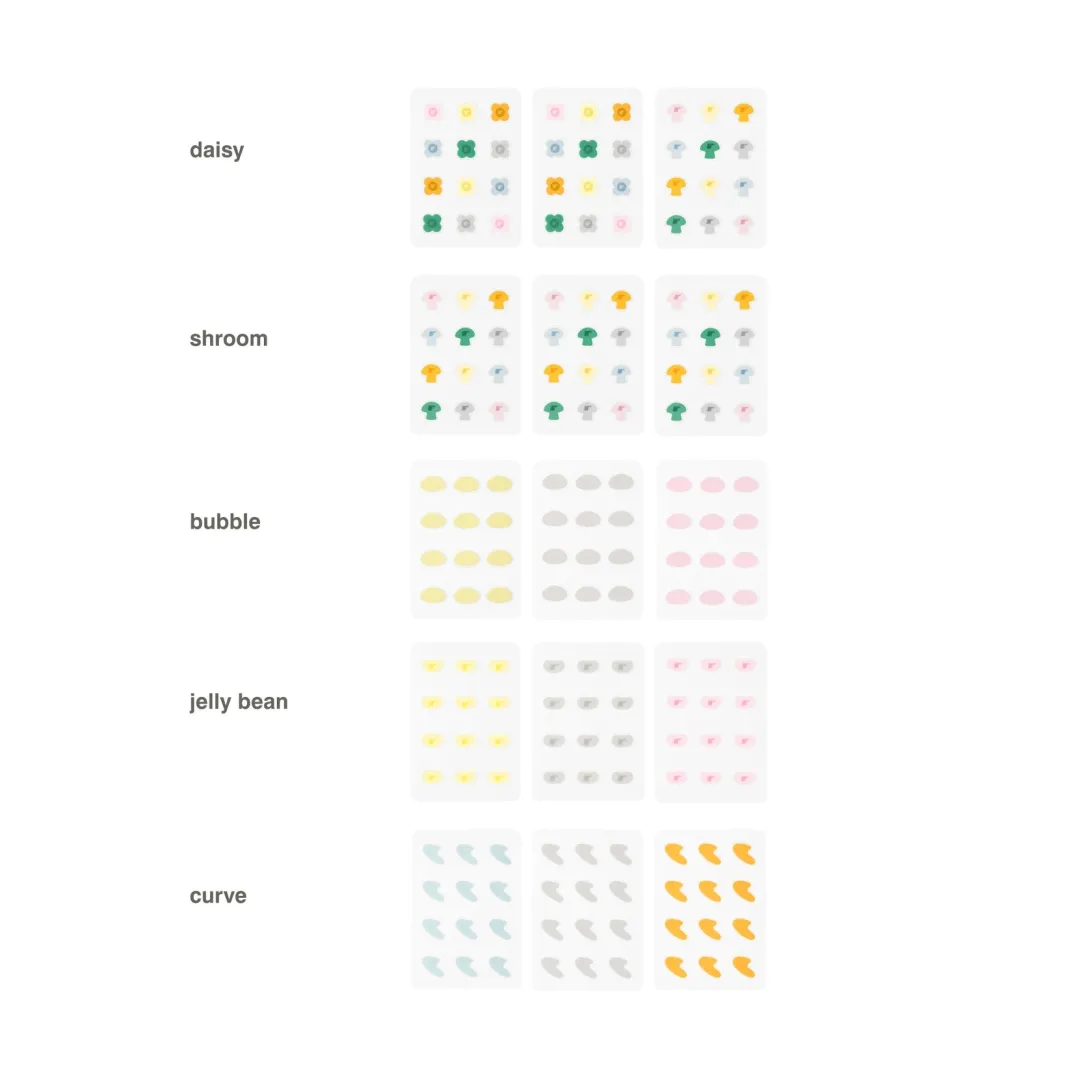 Зберіть усі п’ять форм Spotwear в один набір. Клінічно доведено, що ці наклейки зі 100% гідроколоїду мінімізують видимість прищів. Наклейте їх, щоб створити зручну захисну оболонку для прищів, коли ви перебуваєте в дорозі. Вони допомагають поглинати надлишок шкірного жиру та захищають від несприятливих факторів, завдяки чому прищі виглядають меншими, плоскими та менш почервонілими.