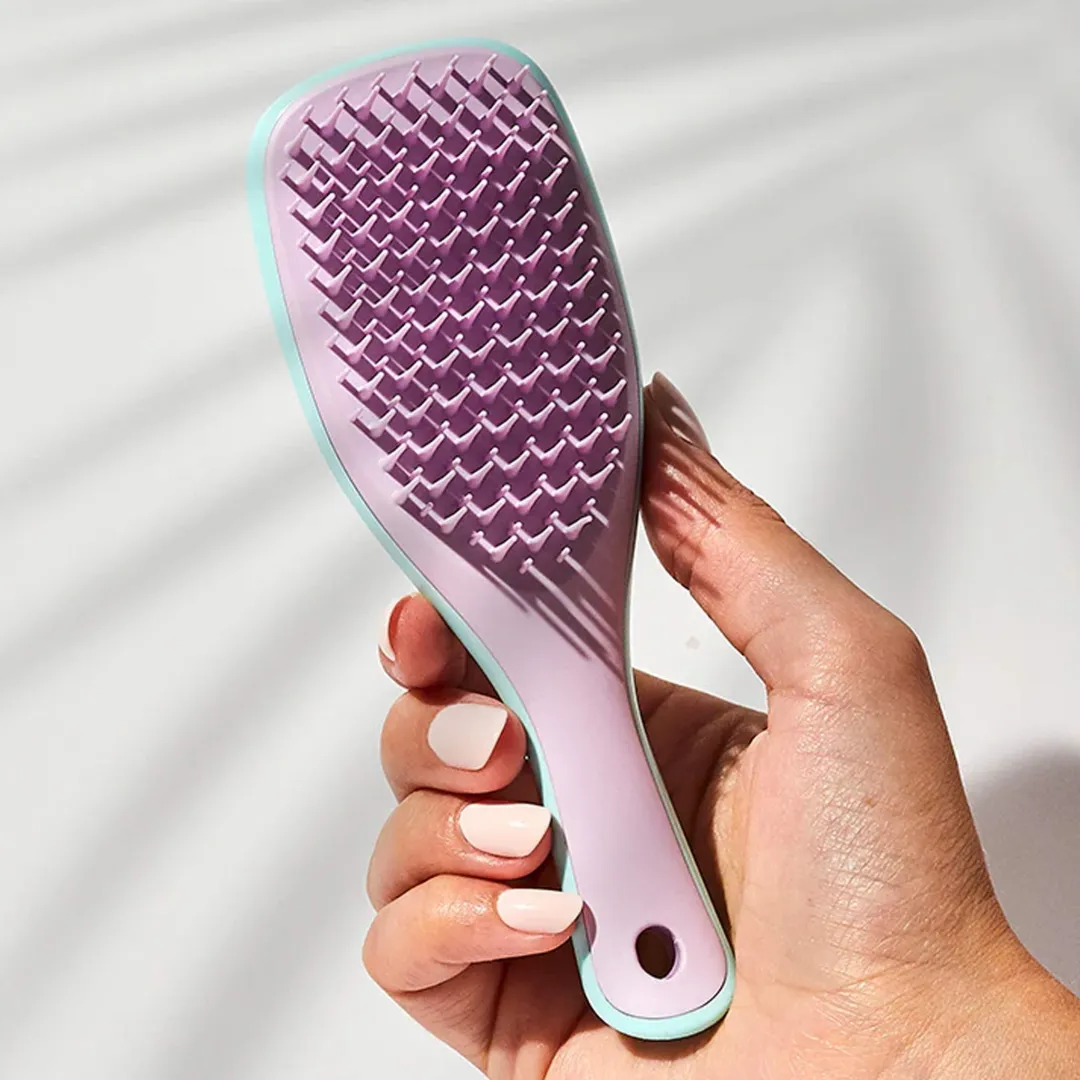 Щітка Tangle Teezer The Ultimate Detangler Mini - міні-формат знаменитої моделі The Ultimate Detangler. Запатентовані дворівневі зубчики дбайливо і швидко розплутують вологі пасма, рівномірно розподіляють маски і бальзами по волоссю. Завдяки зменшеному розміру щітку зручно брати з собою, а також використовувати дітям. Спеціальний отвір на ручці дає змогу прикріпити The Ultimate Detangler Mini до косметички та мати при собі в будь-якій ситуації. У результаті регулярного використання Tangle Teezer волосся стає гладким і блискучим.