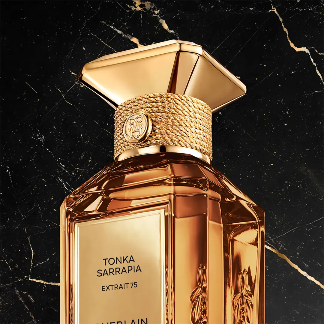 Tonka Sarrapia Extrait 75 входить до колекції Les Extraits Signature, яка втілює квінтесенцію ароматів Guerlain. Віддаючи данину поваги алхімії Guerlinade – культової фірмової суміші Будинку – Les Extraits Signature підкреслює кожну з шести сировинних складових, що входять до її складу, та розкриває їх золотий перетин.
