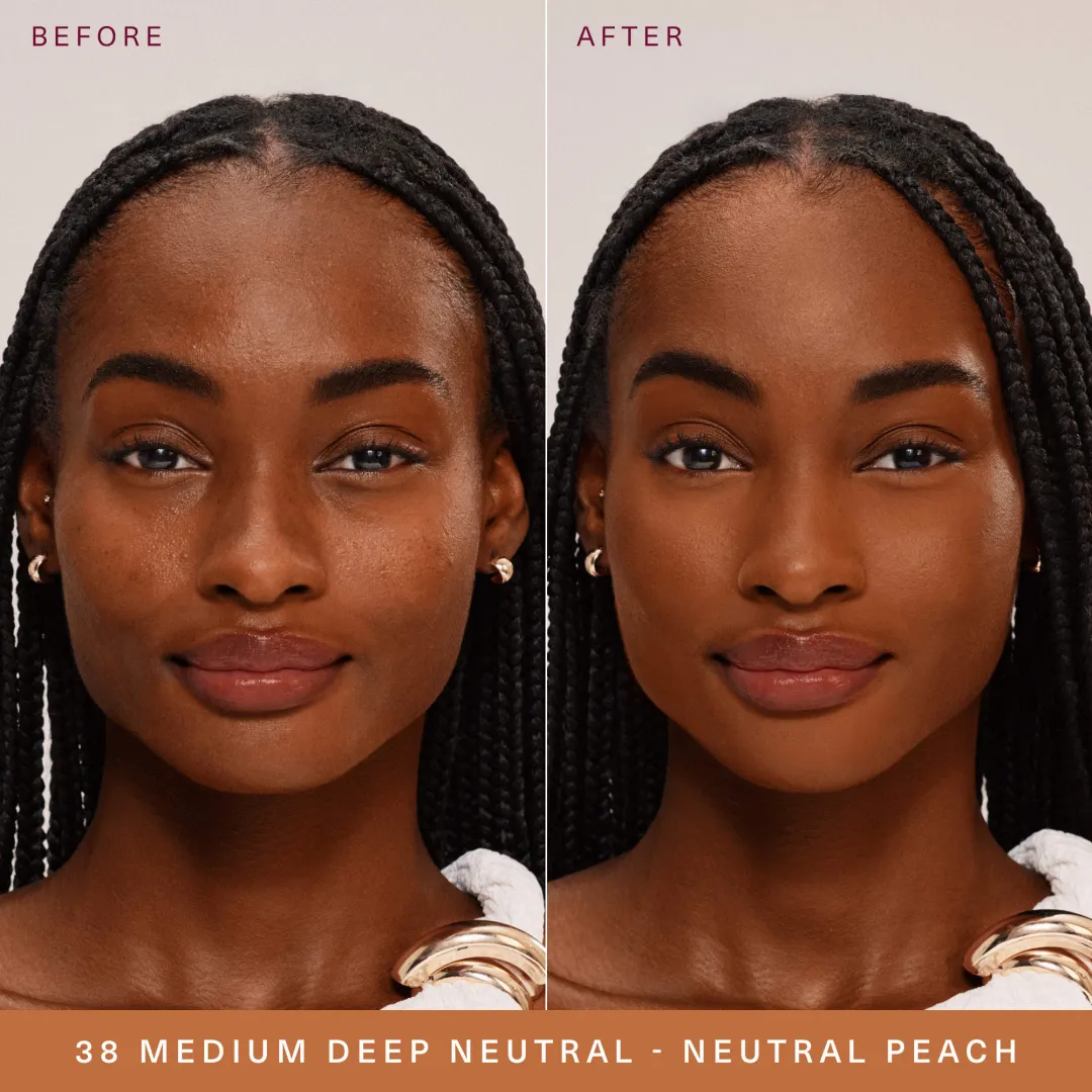 Ваша найкраща шкіра миттєво — покриття від середнього до повного, яке можна нарощувати, миттєво розмиває, вирівнює та зменшує видимість пор, створюючи природне матове покриття, яке рухається разом із шкірою — і з часом виглядає ще краще.
