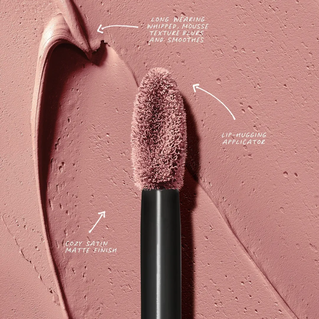 Повне покриття, довготривалий сатиновий матовий колір. Повітряна, мусова текстура м’яко обволікає губи. Масло насіння пасифлори живить і пом’якшує губи. Повторюйте контури губ аплікатором у формі «горошини» для точної та акуратної нанесення.