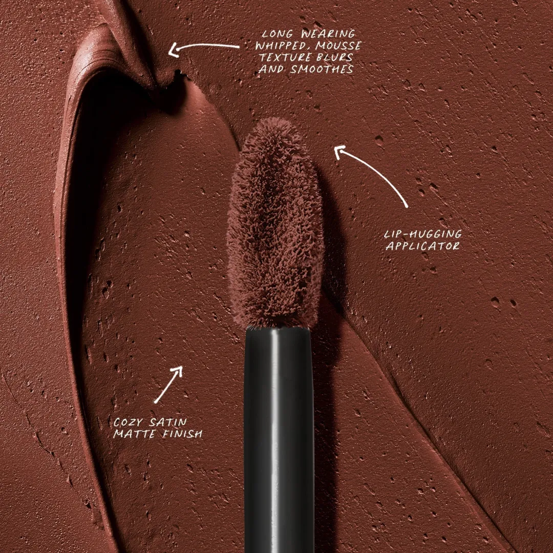 Повне покриття, довготривалий сатиновий матовий колір. Повітряна, мусова текстура м’яко обволікає губи. Масло насіння пасифлори живить і пом’якшує губи. Повторюйте контури губ аплікатором у формі «горошини» для точної та акуратної нанесення.