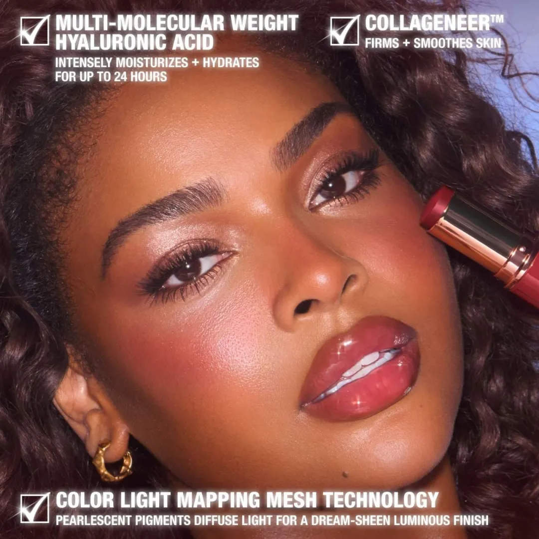 Рум'яна Unreal Blush від Charlotte Tilbury насичені корисними для шкіри інгредієнтами, які зволожують і помітно розгладжують шкіру, забезпечуючи тривалий колір і маслянисту текстуру. Ця проста у використанні формула містить мікроскопічні перламутрові пігменти, які надають щокам і губам блискучий відтінок і яскравий колір.