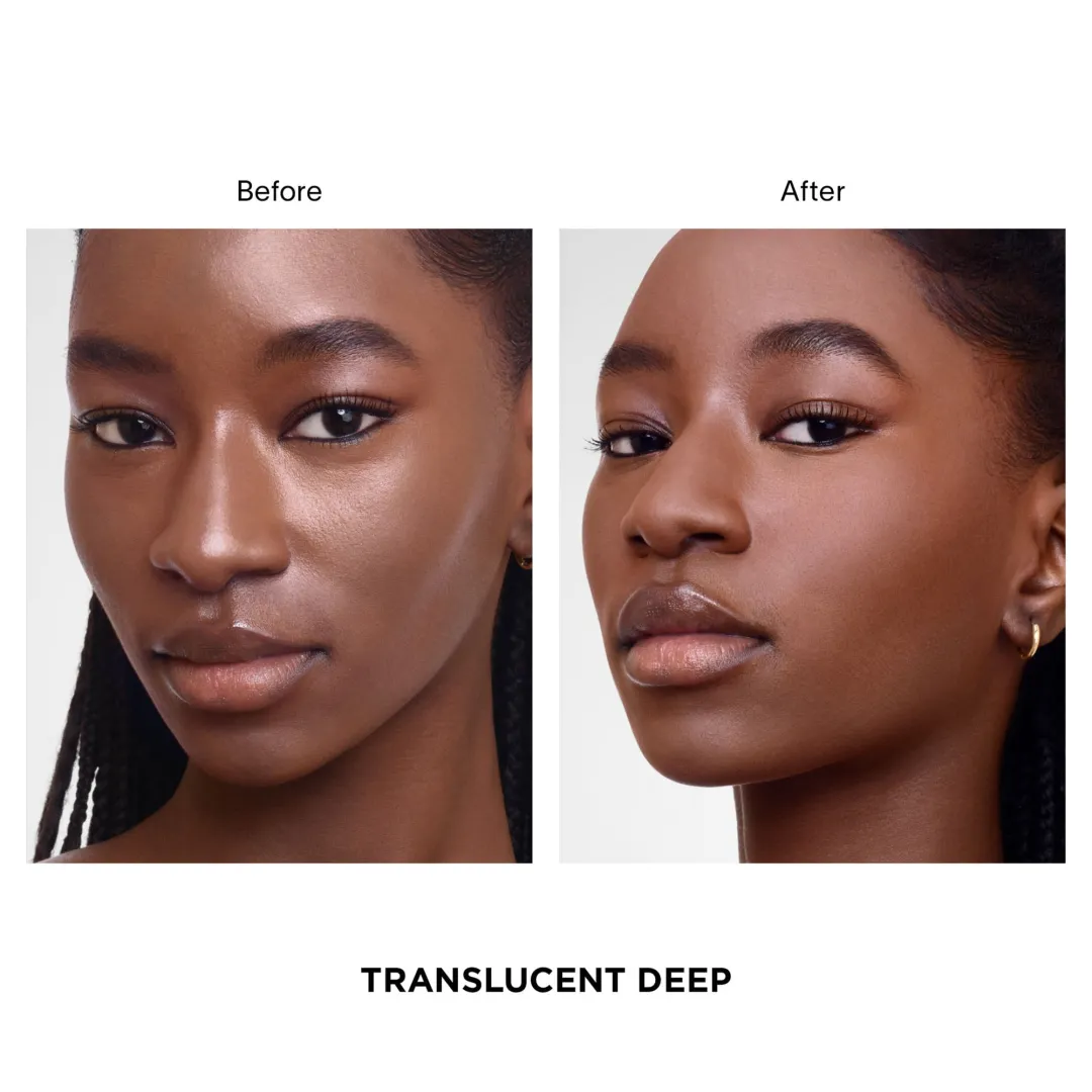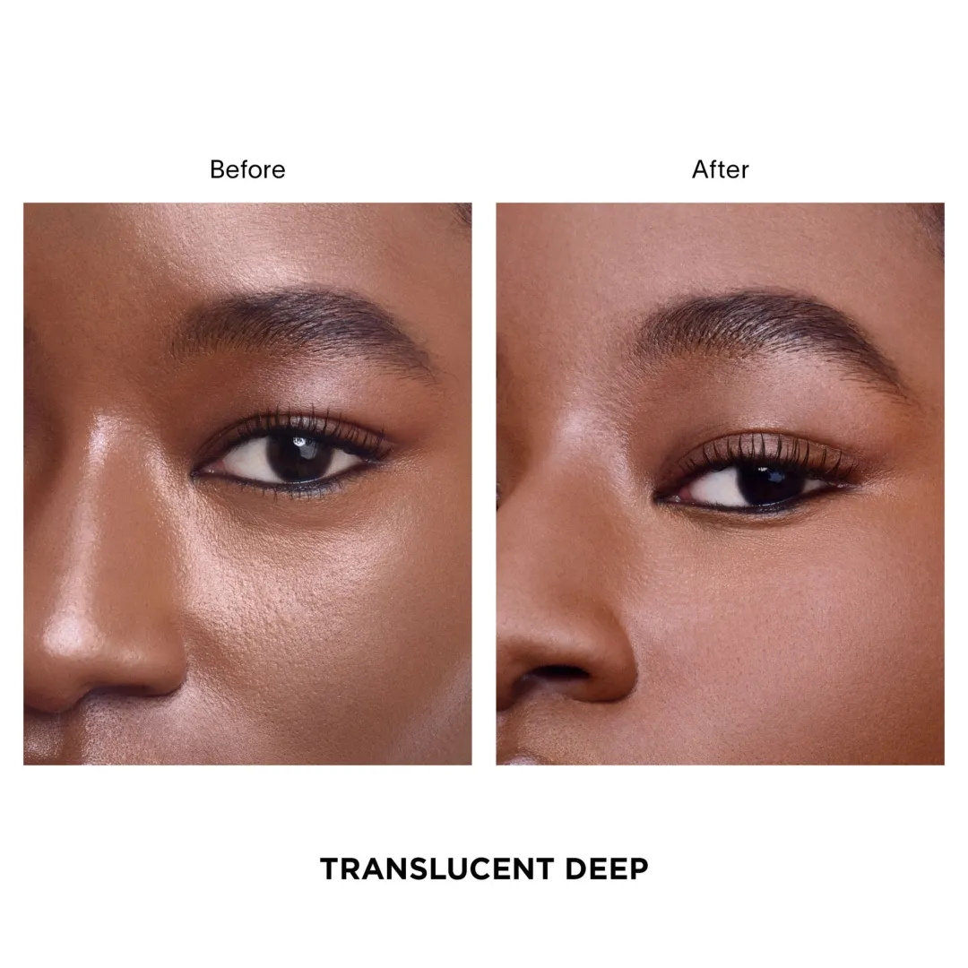 Без тальку, прозора пресована пудра, клінічно доведена, що миттєво зменшує блиск, забезпечуючи ефект аерографії, який тримається весь день. Ця невагома пудра, що контролює блиск, дозволяє зафіксувати, вдосконалити та підправити макіяж на ходу.