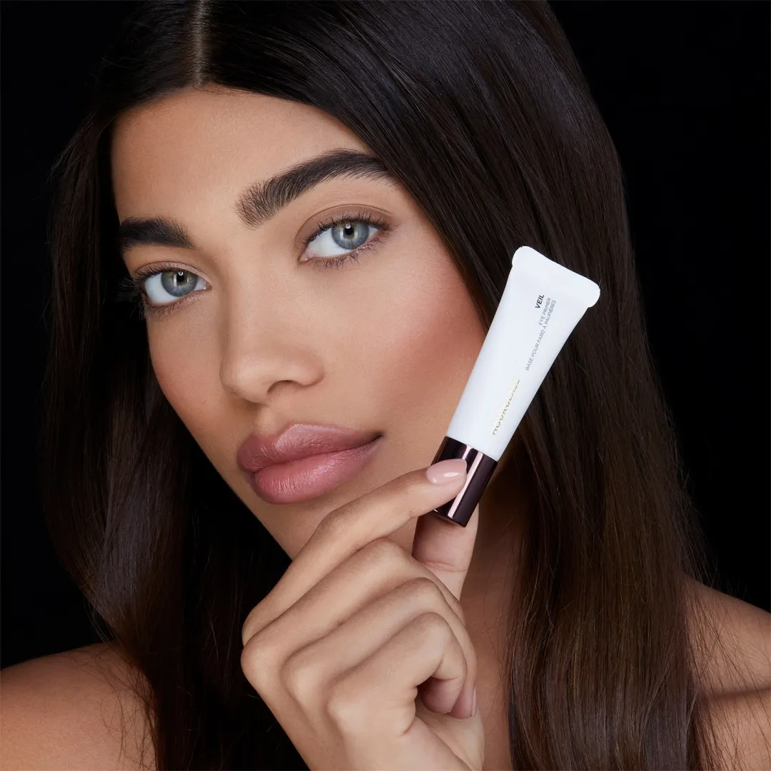 Нанесіть невелику кількість на кінчик пальця і нанесіть крапками на повіку. Акуратно поплескайте, щоб рівномірно розподілити засіб по всій повіці і до брови. Дайте повністю висохнути перед нанесенням тіней або залиште без покриття для природного, рівномірного покриття.
