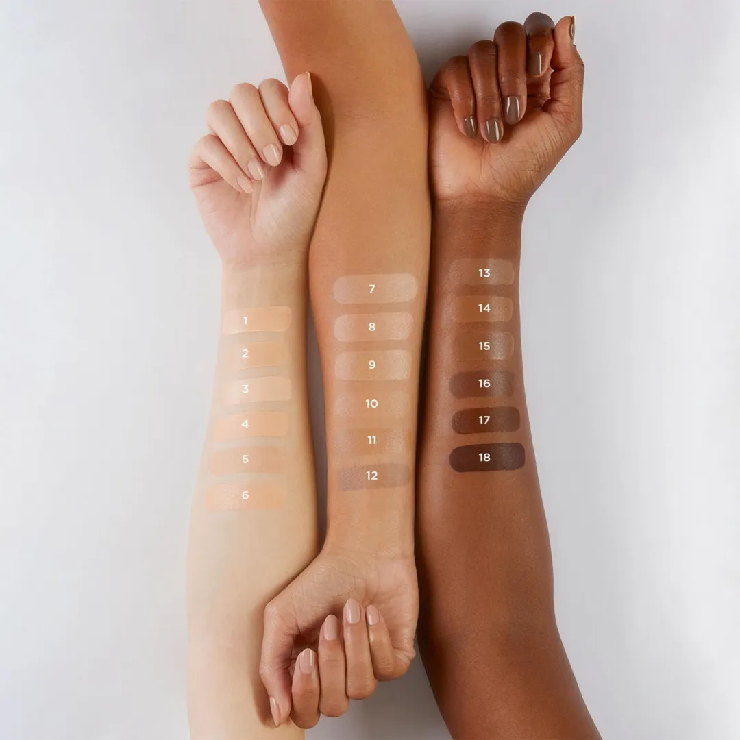 Легкий тональний крем, який миттєво підвищує рівень зволоження шкіри на 52% і забезпечує цілоденне зволоження, надаючи шкірі свіжий і здоровий вигляд. Ця формула миттєво вбирається в шкіру, забезпечуючи комфортне носіння протягом усього дня і створюючи прозору плівку, яка маскує недоліки і вирівнює тон шкіри, одночасно помітно розгладжуючи і надаючи обличчю об'єм. Вона містить 94% інгредієнтів природного походження, включаючи гіалуронову кислоту, яка глибоко зволожує і покращує сяйво шкіри. Також формула містить рослинний сквалан, олію насіння лугової піни і суміш рамбутану, що миттєво робить шкіру гладшою на вигляд і на дотик, забезпечуючи постійне живлення протягом дня.